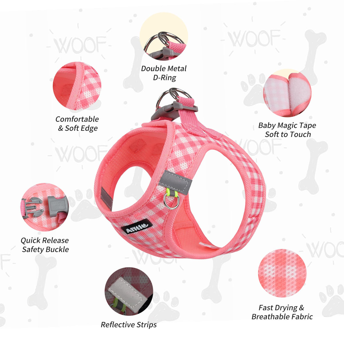 Aiitle Small Dog Harness And Leash Set, Step In No Pull Pet Harness, Soft Mesh Reflective Plaid Vest Harnesses For Small Dogs Pu
