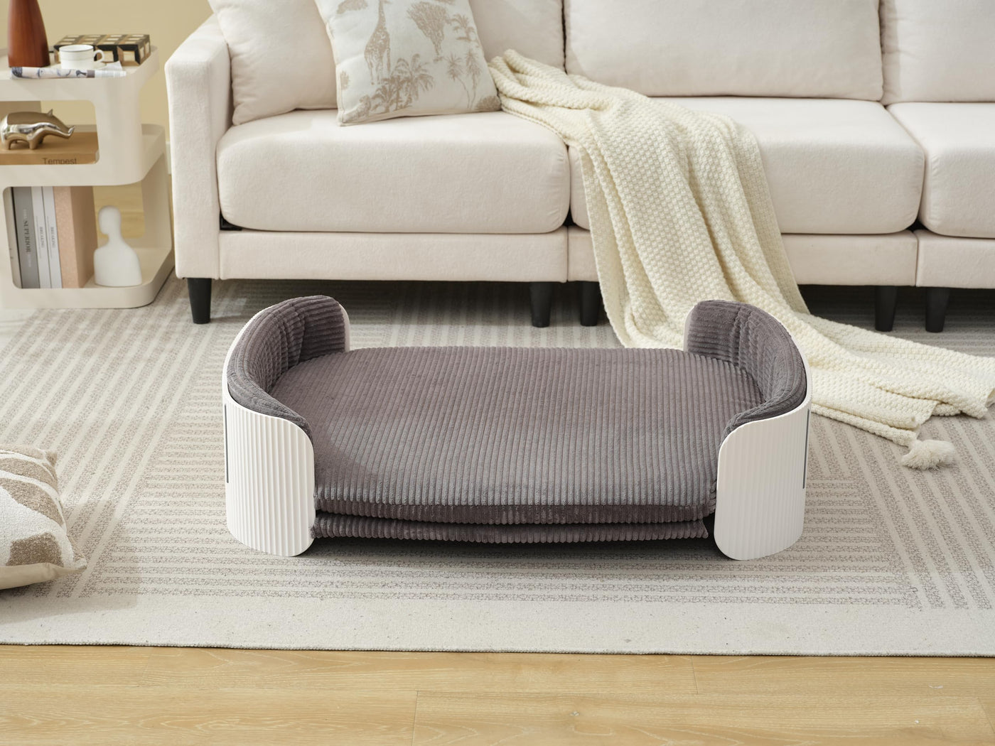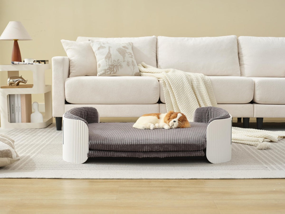 Aikayoka Modern Pet Sofa Bed With Corduroy Cushion, Pink And White, Living Room Furniture For Cats And Dogs (White+Gray, Medium)
