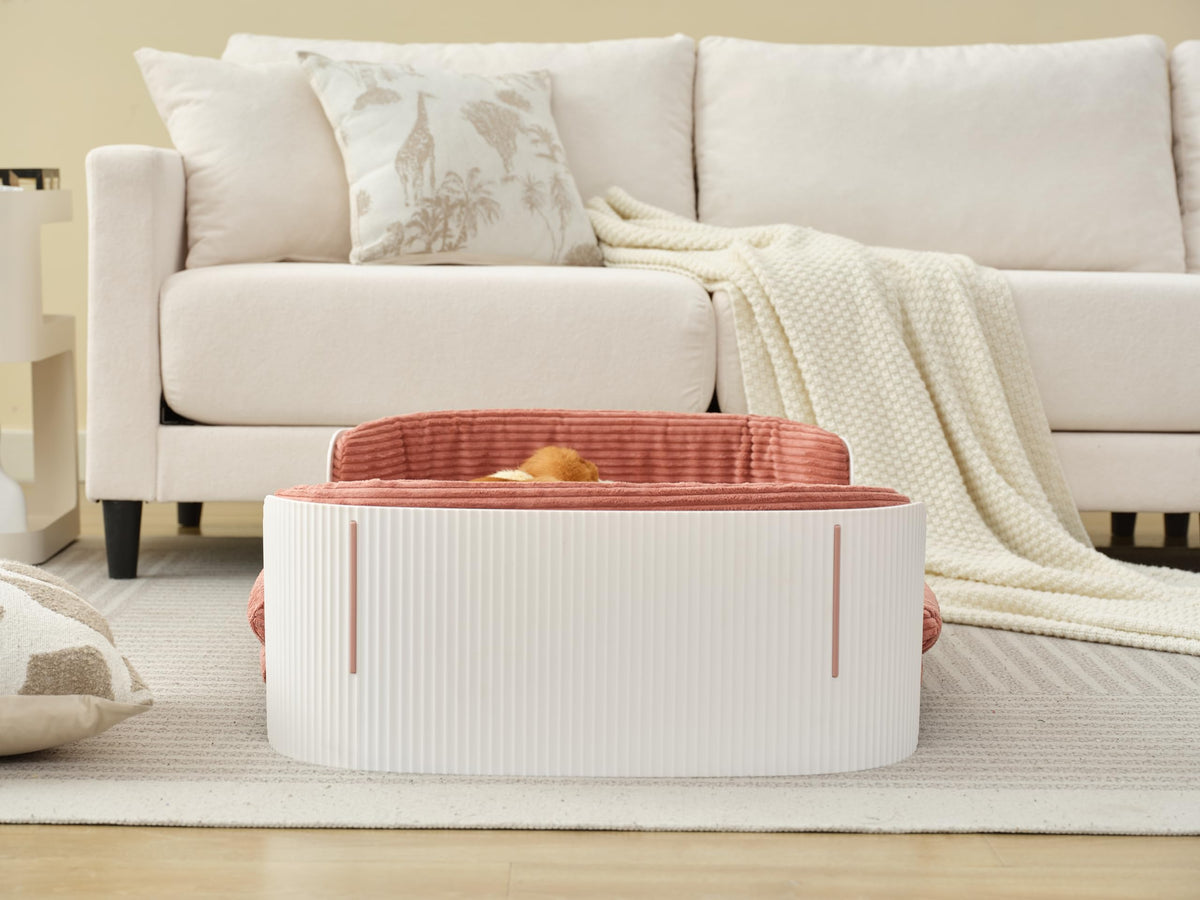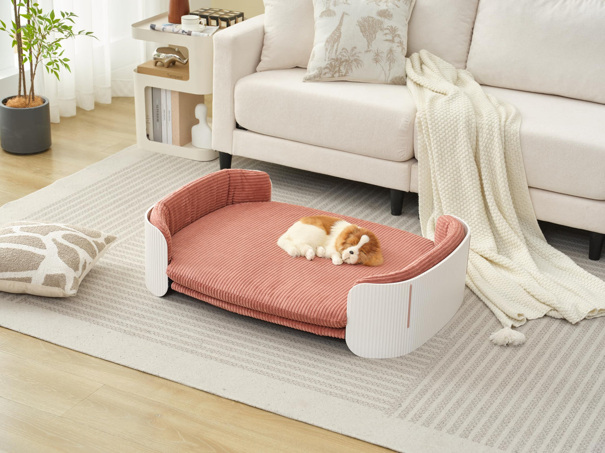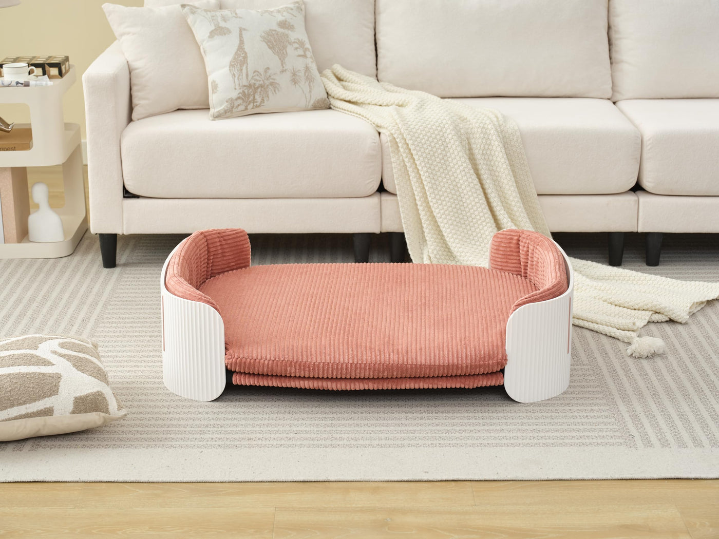 Transform Your Living Space With This Stylish And Comfortable Pet Sofa That Perfectly Balances Aesthetics With Functionality. The Elegant Design Features A Soft Corduroy-Style Fabric In A Soothing Coral Pink Shade, Complemented By Modern White Side Panels That Add A Contemporary Touch. The Raised Edges Create A Cozy, Secure Space Where Your Furry Friend Can Relax And Feel Protected. The Generous Sleeping Surface Provides Ample Room For Small To Medium-Sized Pets To Stretch Out Comfortably. This Pet Bed Seamlessly Integrates Into Any Home D Cor, Looking Particularly Striking Against Neutral-Toned Furniture And Carpeting. The Durable Construction Ensures Lasting Quality, While The Plush Cushioning Offers The Perfect Combination Of Support And Comfort For Your Pet'S Rest. Whether Placed In Your Living Room, Bedroom, Or Study, This Sophisticated Pet Sofa Adds A Touch Of Refined Pet Luxury To Your Home While Giving Your Companion Their Own Dedicated Space To Unwind.