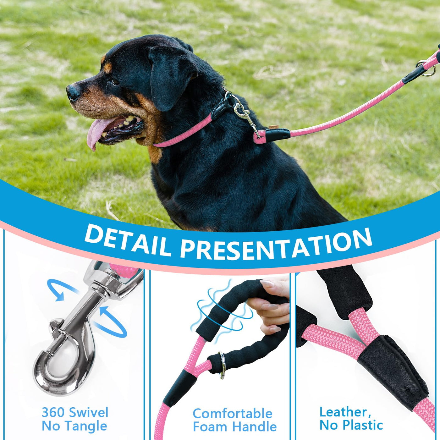 Why choose us? Our vision - Strive to bring Safety, good-quality, appealing design to all dog lovers. Over 25 years experience - We have been learning and upgrading to make dogs feel more comfortable with Aiminto products and simultaneously ensure our products are in good condition in quality and trendy design. Aiminto Nylon Rope Leash - Make Your Dog Walking and Training Under Control! Dogs can get very hyper during trainings, and it 's especially hard to control them when you 're dealing with a large breed. Aiminto 's Nylon Rope Leash is your ultimate choice to ensure your dog is under control. These leashes incorporate tightly-sewn high-grade Polyester fabric that 's destined to last. Because of its durable and robust build, Aiminto 's Durable Rope Leash is the best leash for dog training! The secure metal clasp is very easy to operate and also ensures maximum safety for your dog. Strong Polyester Build - Maximum Durability & Comfort Polyester fabric can withstand a high magnitude pull force and thus, makes it easy to control your dog during trainings, making it the best choice for a dog leash. So, it doesn 't matter if you have a furry friend who likes to get aggressive during training time - the Aiminto dog leash has it handled!