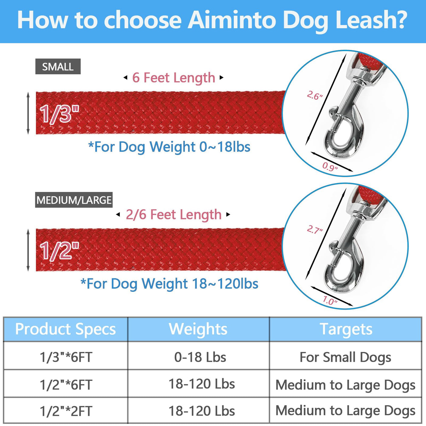 Why choose us? Our vision - Strive to bring Safety, good-quality, appealing design to all dog lovers. Over 25 years experience - We have been learning and upgrading to make dogs feel more comfortable with Aiminto products and simultaneously ensure our products are in good condition in quality and trendy design. Aiminto Nylon Rope Leash - Make Your Dog Walking and Training Under Control! Dogs can get very hyper during trainings, and it 's especially hard to control them when you 're dealing with a large breed. Aiminto 's Nylon Rope Leash is your ultimate choice to ensure your dog is under control. These leashes incorporate tightly-sewn high-grade Polyester fabric that 's destined to last. Because of its durable and robust build, Aiminto 's Durable Rope Leash is the best leash for dog training! The secure metal clasp is very easy to operate and also ensures maximum safety for your dog. Strong Polyester Build - Maximum Durability & Comfort Polyester fabric can withstand a high magnitude pull force and thus, makes it easy to control your dog during trainings, making it the best choice for a dog leash. So, it doesn 't matter if you have a furry friend who likes to get aggressive during training time - the Aiminto dog leash has it handled!
