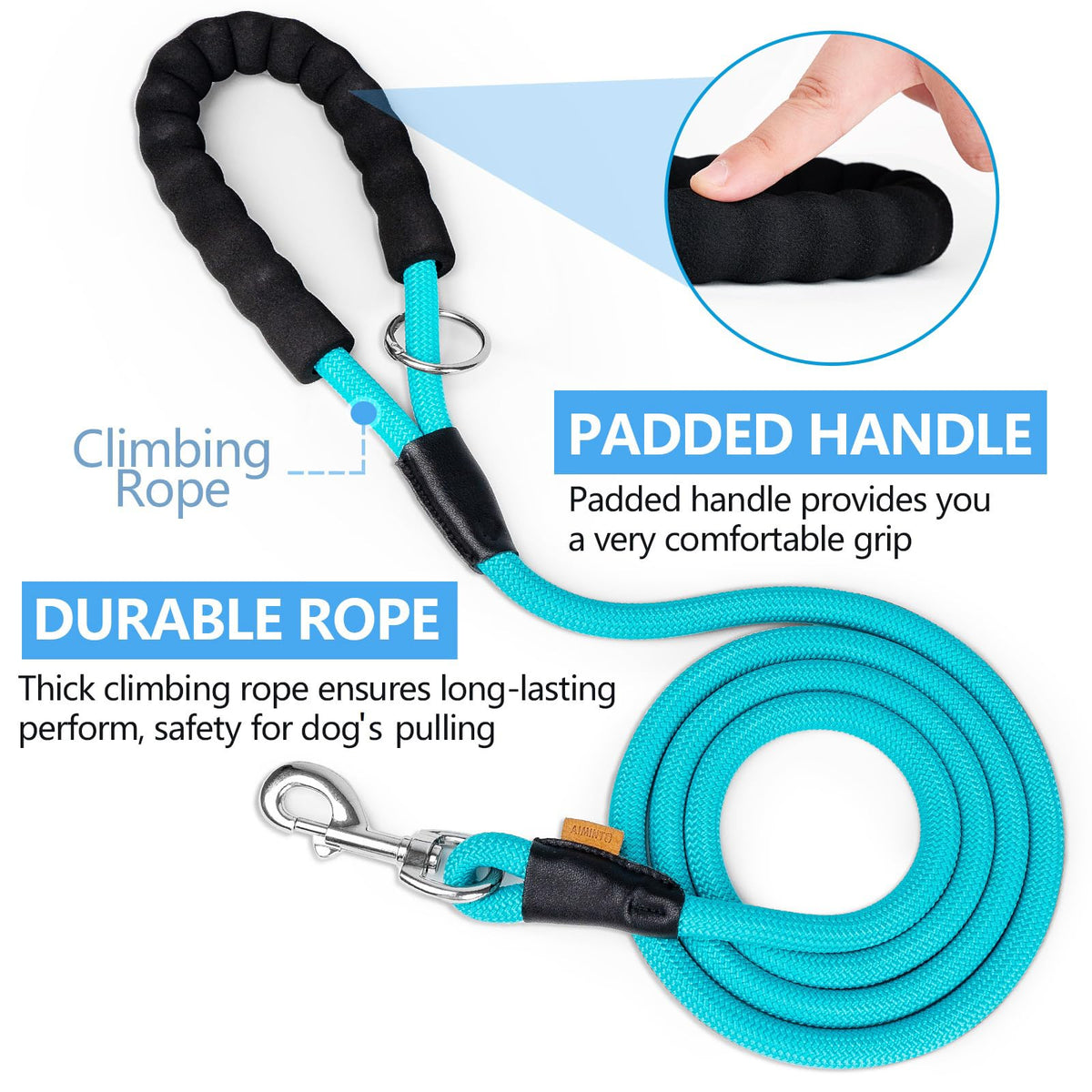 Why choose us? Our vision - Strive to bring Safety, good-quality, appealing design to all dog lovers. Over 25 years experience - We have been learning and upgrading to make dogs feel more comfortable with Aiminto products and simultaneously ensure our products are in good condition in quality and trendy design. Aiminto Nylon Rope Leash - Make Your Dog Walking and Training Under Control! Dogs can get very hyper during trainings, and it 's especially hard to control them when you 're dealing with a large breed. Aiminto 's Nylon Rope Leash is your ultimate choice to ensure your dog is under control. These leashes incorporate tightly-sewn high-grade Polyester fabric that 's destined to last. Because of its durable and robust build, Aiminto 's Durable Rope Leash is the best leash for dog training! The secure metal clasp is very easy to operate and also ensures maximum safety for your dog. Strong Polyester Build - Maximum Durability & Comfort Polyester fabric can withstand a high magnitude pull force and thus, makes it easy to control your dog during trainings, making it the best choice for a dog leash. So, it doesn 't matter if you have a furry friend who likes to get aggressive during training time - the Aiminto dog leash has it handled!