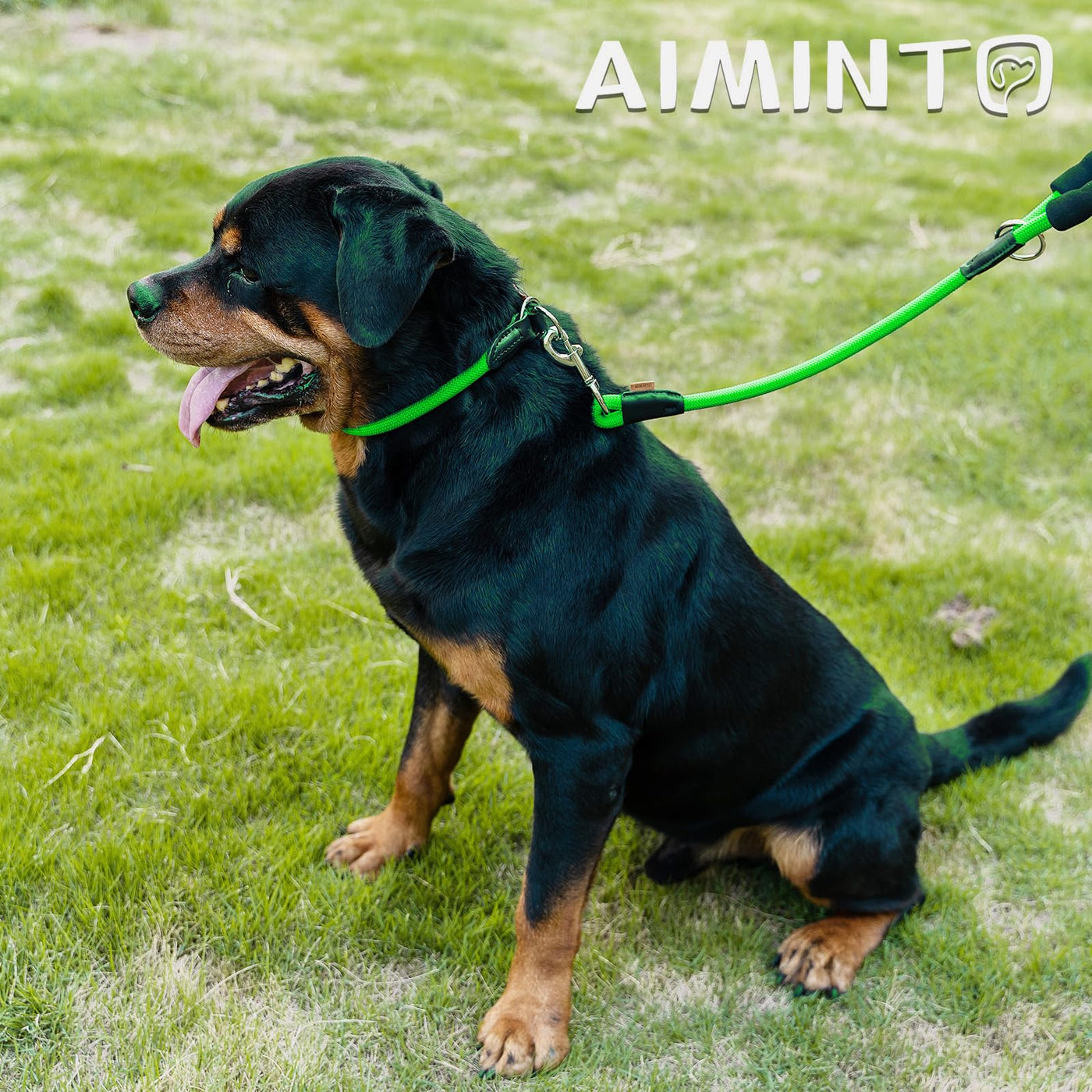 Why choose us? Our vision - Strive to bring Safety, good-quality, appealing design to all dog lovers. Over 25 years experience - We have been learning and upgrading to make dogs feel more comfortable with Aiminto products and simultaneously ensure our products are in good condition in quality and trendy design. Aiminto Nylon Rope Leash - Make Your Dog Walking and Training Under Control! Dogs can get very hyper during trainings, and it 's especially hard to control them when you 're dealing with a large breed. Aiminto 's Nylon Rope Leash is your ultimate choice to ensure your dog is under control. These leashes incorporate tightly-sewn high-grade Polyester fabric that 's destined to last. Because of its durable and robust build, Aiminto 's Durable Rope Leash is the best leash for dog training! The secure metal clasp is very easy to operate and also ensures maximum safety for your dog. Strong Polyester Build - Maximum Durability & Comfort Polyester fabric can withstand a high magnitude pull force and thus, makes it easy to control your dog during trainings, making it the best choice for a dog leash. So, it doesn 't matter if you have a furry friend who likes to get aggressive during training time - the Aiminto dog leash has it handled!