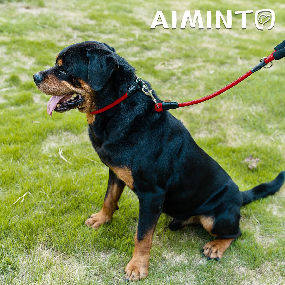 Why choose us? Our vision - Strive to bring Safety, good-quality, appealing design to all dog lovers. Over 25 years experience - We have been learning and upgrading to make dogs feel more comfortable with Aiminto products and simultaneously ensure our products are in good condition in quality and trendy design. Aiminto Nylon Rope Leash - Make Your Dog Walking and Training Under Control! Dogs can get very hyper during trainings, and it 's especially hard to control them when you 're dealing with a large breed. Aiminto 's Nylon Rope Leash is your ultimate choice to ensure your dog is under control. These leashes incorporate tightly-sewn high-grade Polyester fabric that 's destined to last. Because of its durable and robust build, Aiminto 's Durable Rope Leash is the best leash for dog training! The secure metal clasp is very easy to operate and also ensures maximum safety for your dog. Strong Polyester Build - Maximum Durability & Comfort Polyester fabric can withstand a high magnitude pull force and thus, makes it easy to control your dog during trainings, making it the best choice for a dog leash. So, it doesn 't matter if you have a furry friend who likes to get aggressive during training time - the Aiminto dog leash has it handled!