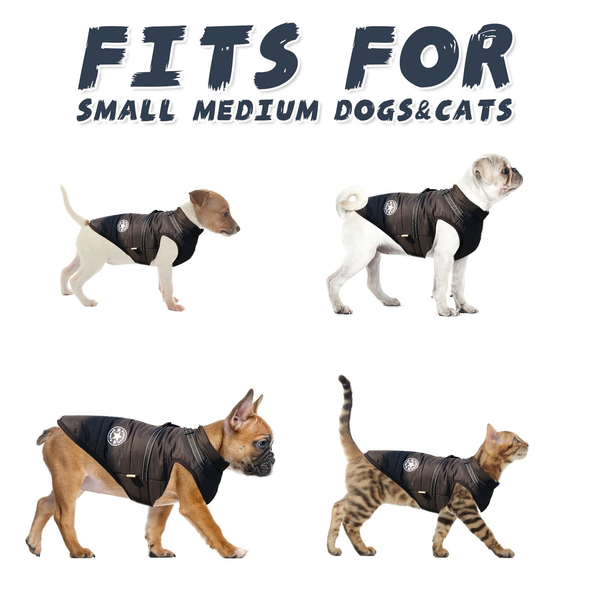 Q: Is the AIMYDOG winter coat suitable for all dog breeds?A: Yes, the AIMYDOG winter coat is designed to fit a variety of small, medium, and large dog breeds including Tidy, Poodle, Husky, Pug, Samoyed, Schnauzer, Corgi, Yorkshire, Chihuahua, and French Bulldog.