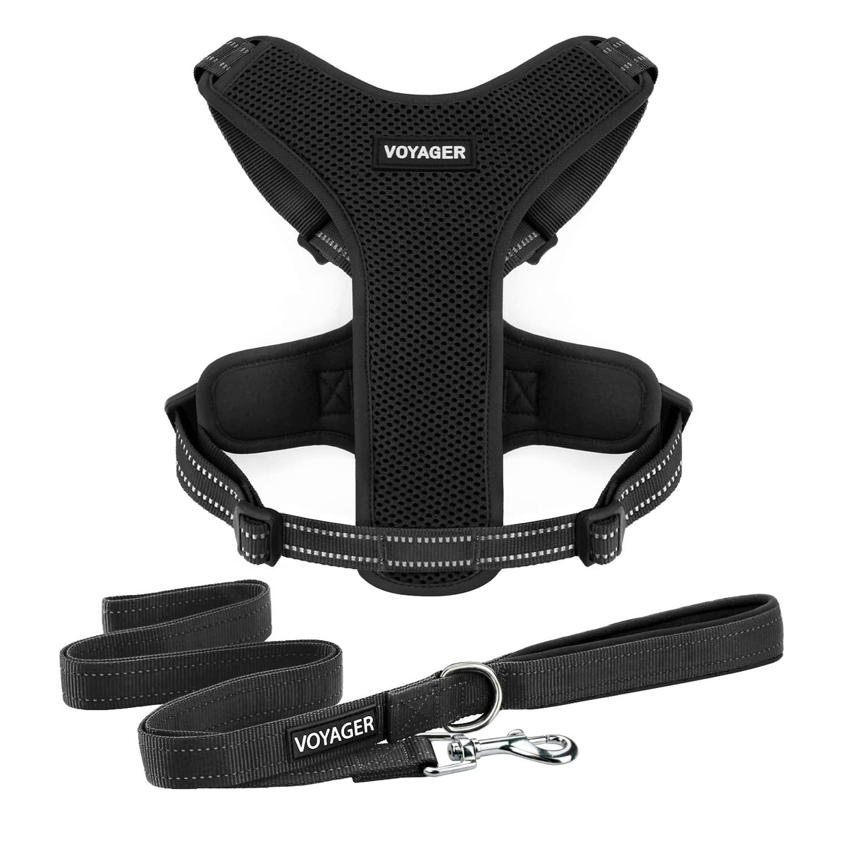 Air Frontier Mesh Dog Harness With And Reflective Dog Leash Set, Reflective Stitching, And Lightweight Breathable No-Pull Design, Adjustable Neck And Chest Straps For Small To Large Breeds - Bk, Xs