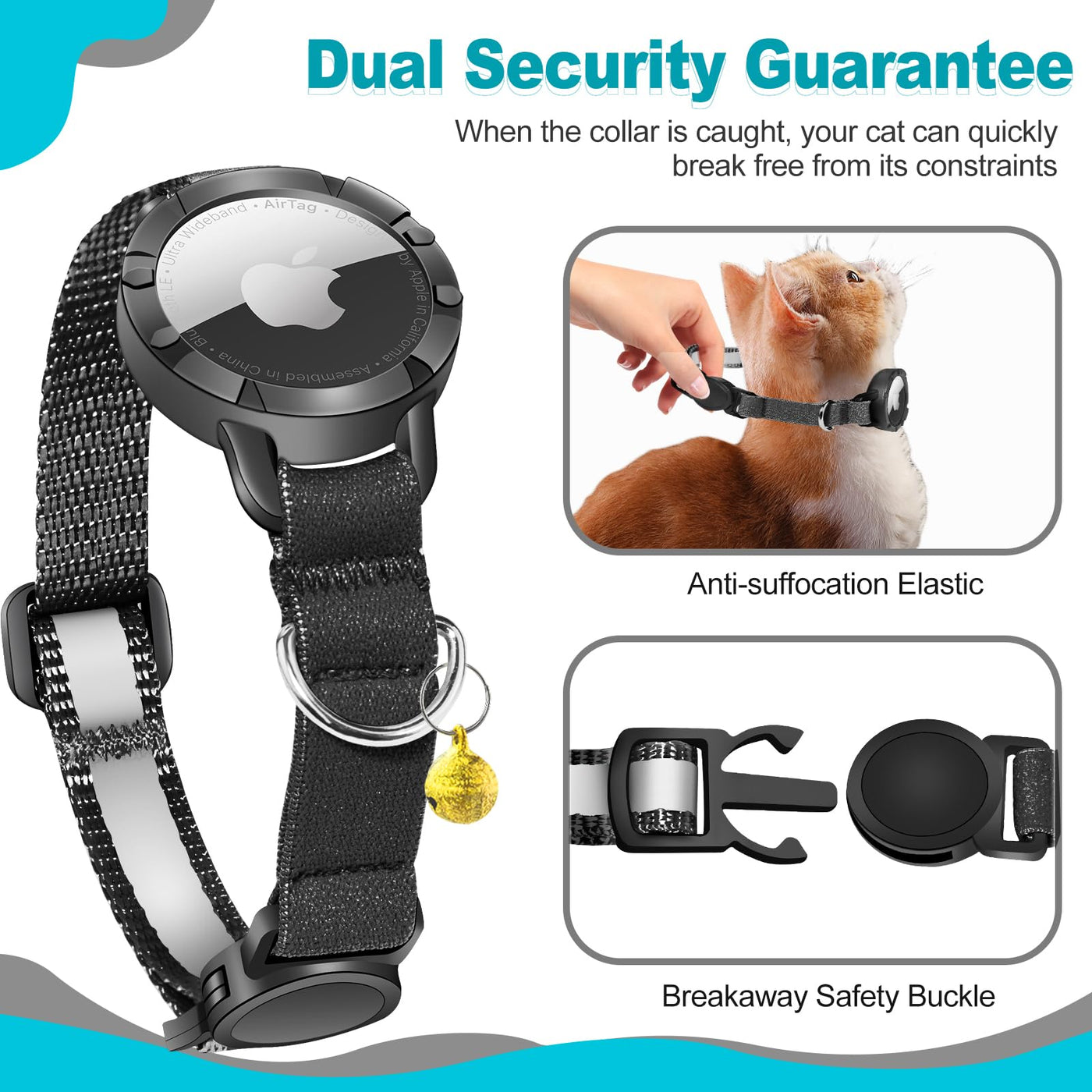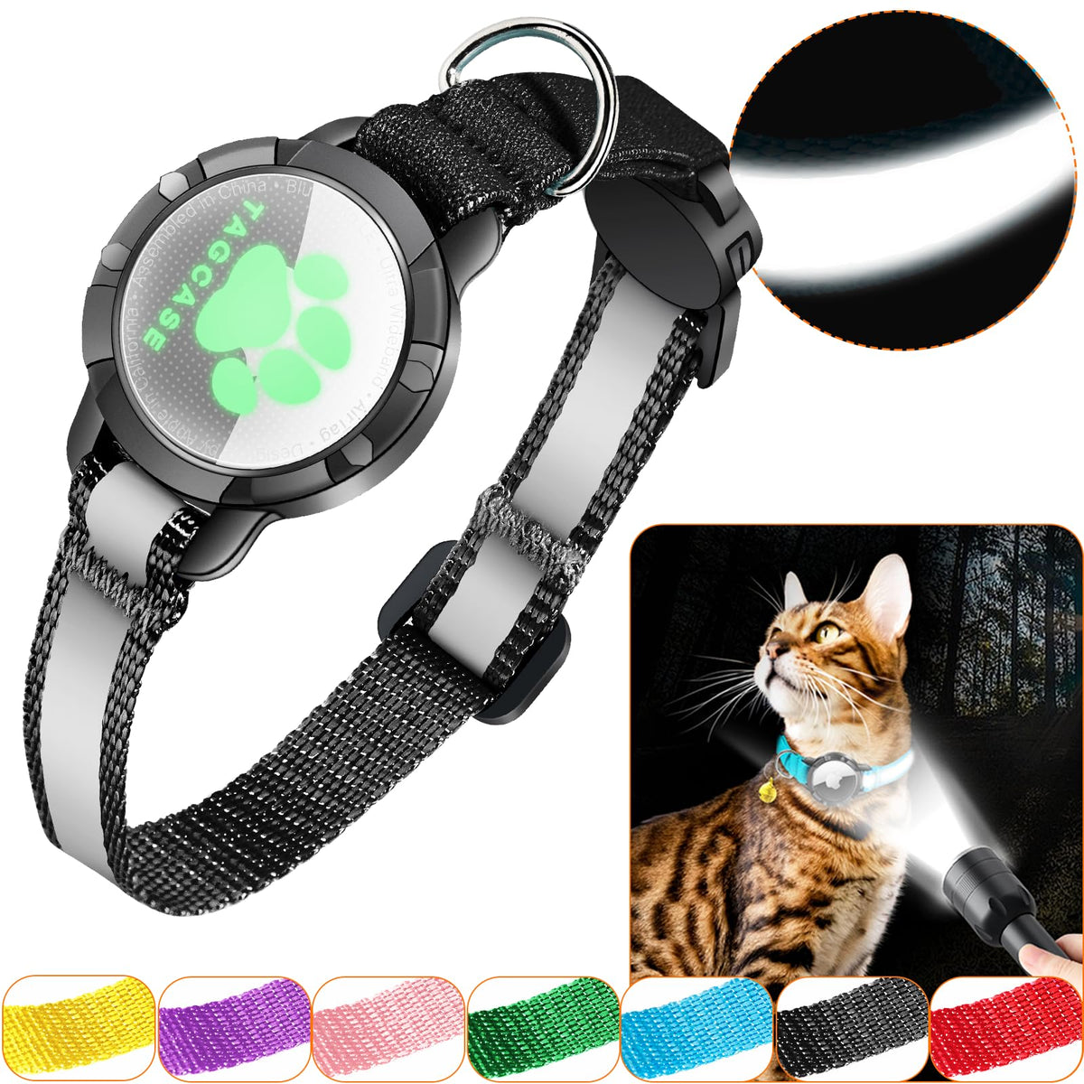 Airtag Cat Collar - Breakaway Cat Collar With Bells, Luminous & Reflective Design, Lightweight Kitten Collar For Apple Air Tag,
