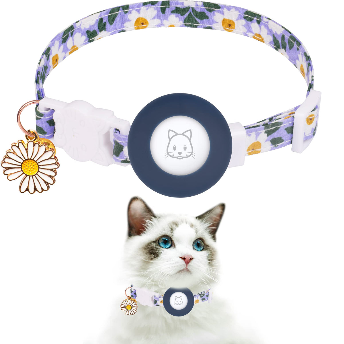 Airtag Cat Collar, Jxfukal Kitten Collar Breakaway With Silicone Airtag Holder, Bells & Flower Charm For Girl Cats Boy Cats Small Dogs(Blue)