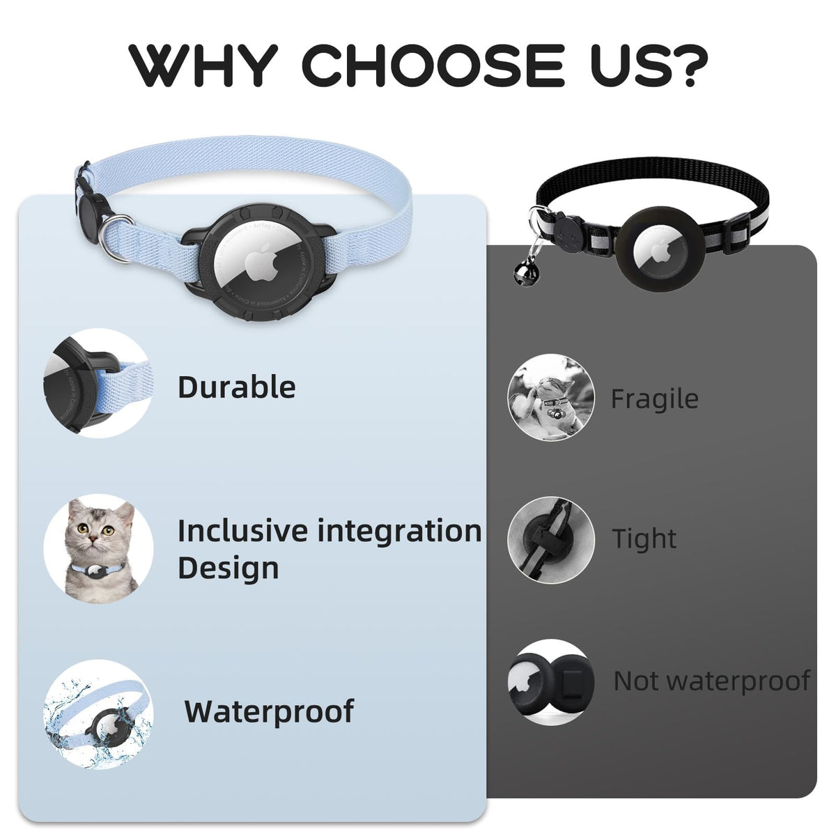 Airtag Cat Collar, Sucegi Stretchy Kitten Collar With Apple Air Tag Holder And Bell, Breakaway Design Ultra Elastic Gps Tracking