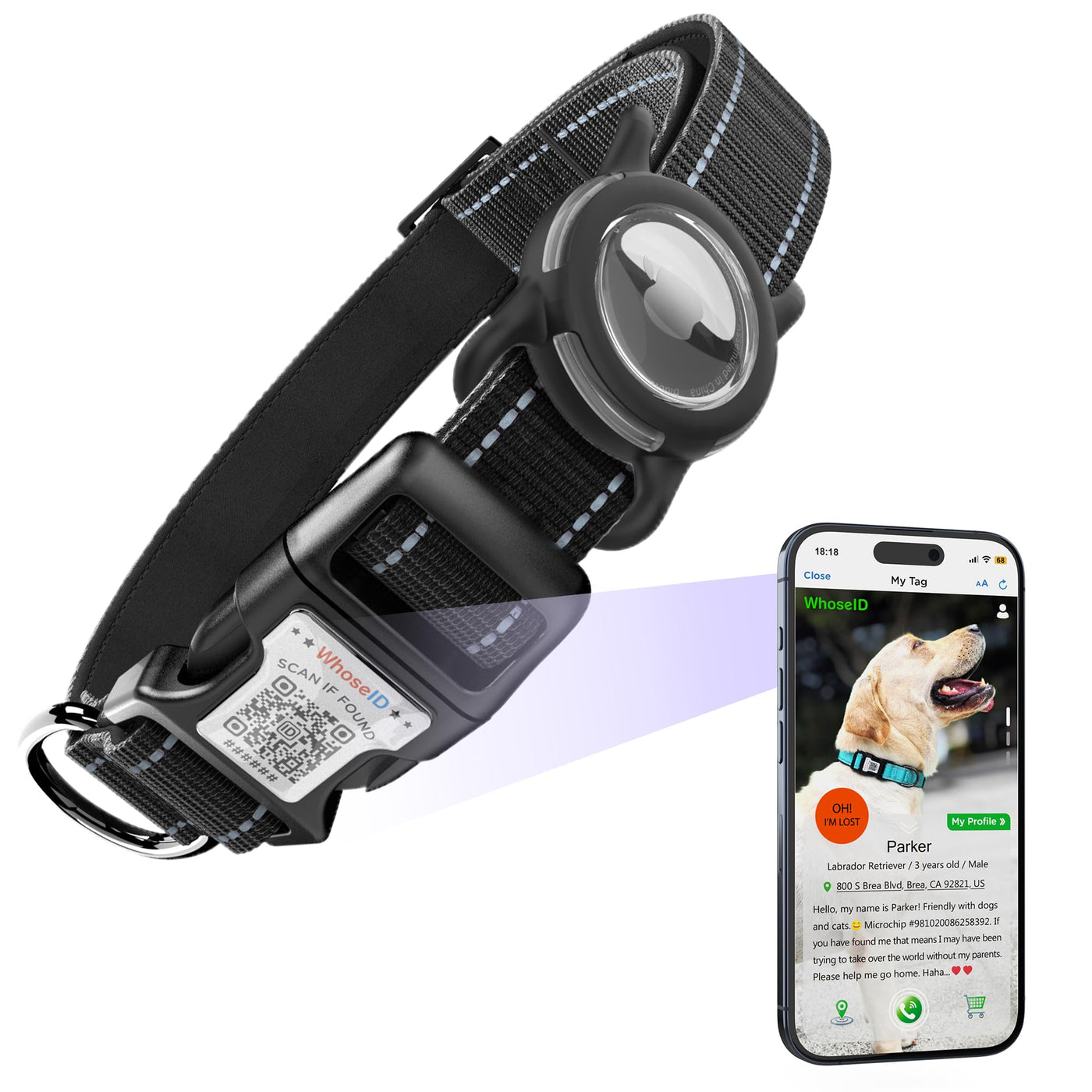 The one-piece dog collar collects AirTag holder and ID tag providing double security for your pet in daily life no need to worry about your dog getting lost. What you get: a dog collar an AirTag holder an ID tag. After-sales guarantee: 180 days warranty