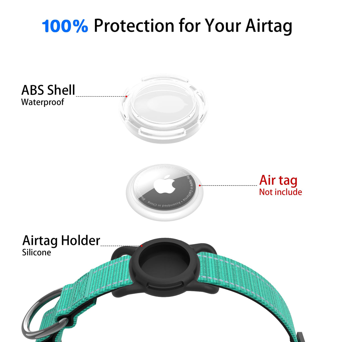The one-piece dog collar collects AirTag holder and ID tag providing double security for your pet in daily life no need to worry about your dog getting lost. What you get: a dog collar an AirTag holder an ID tag. After-sales guarantee: 180 days warranty