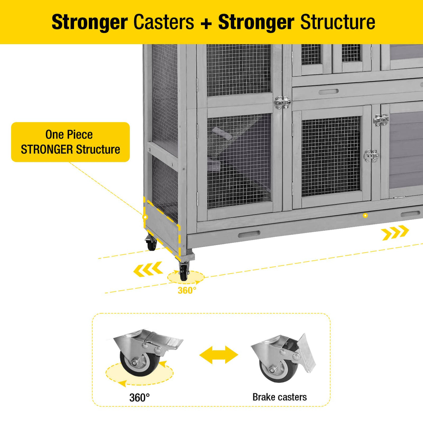 ???EASY ROLLING WHEELS? Equipped with 4 universal wheels these allows you to easily move this rabbit cage from indoors to outdoors. Two of them are brakes to stay well and safe.