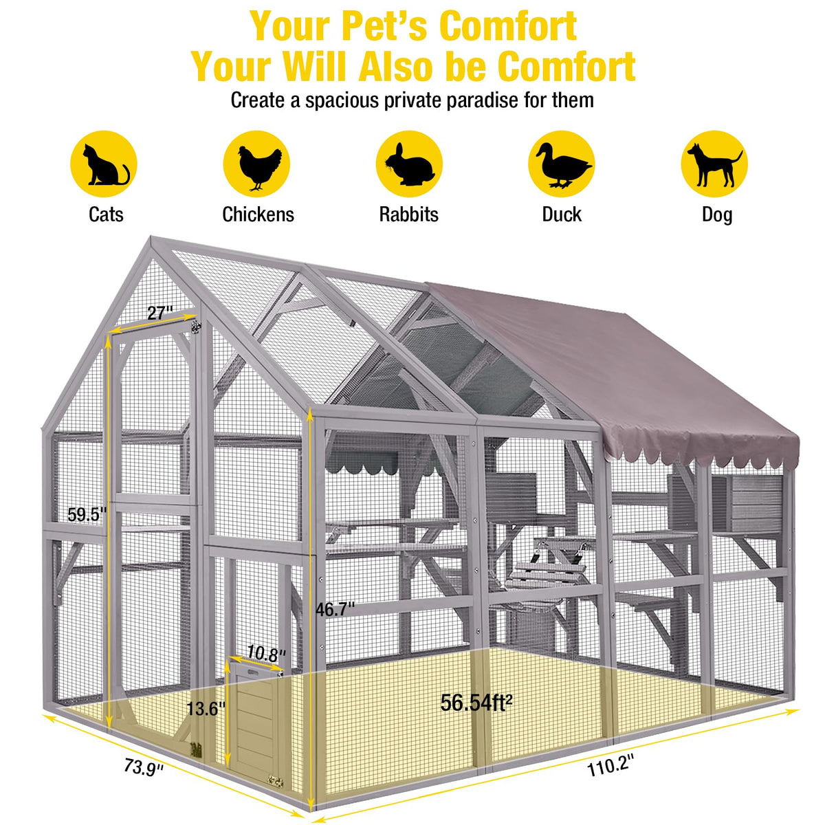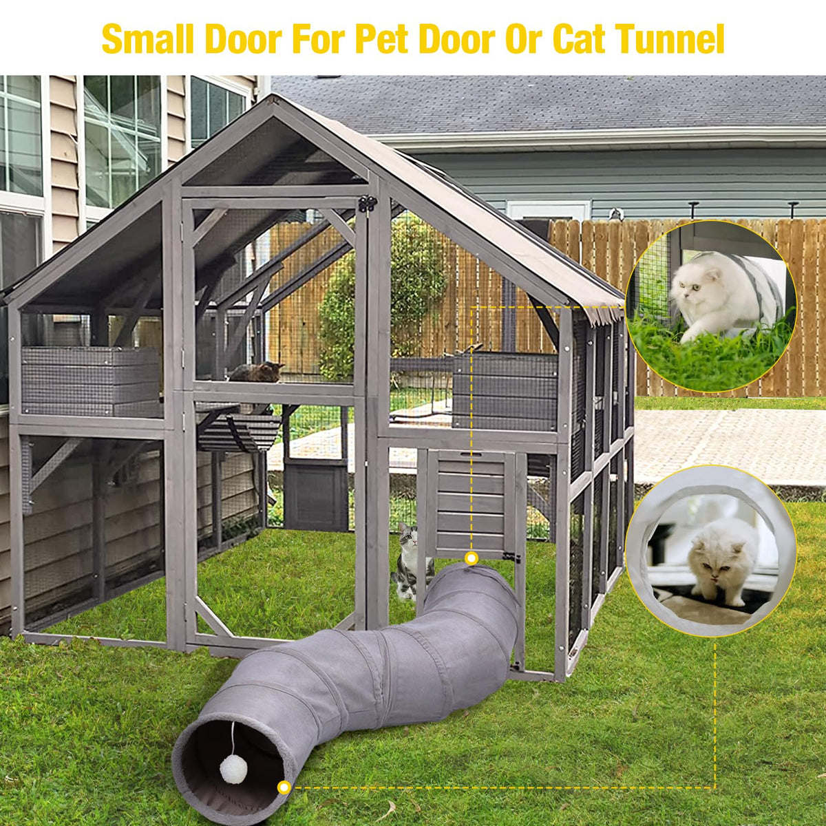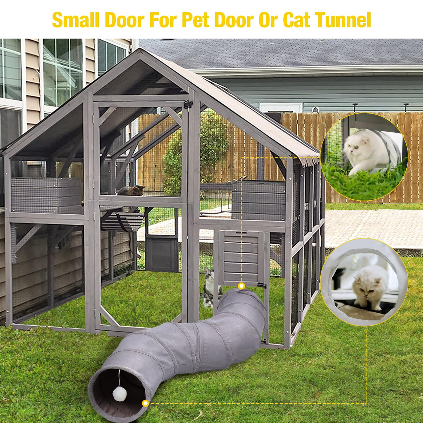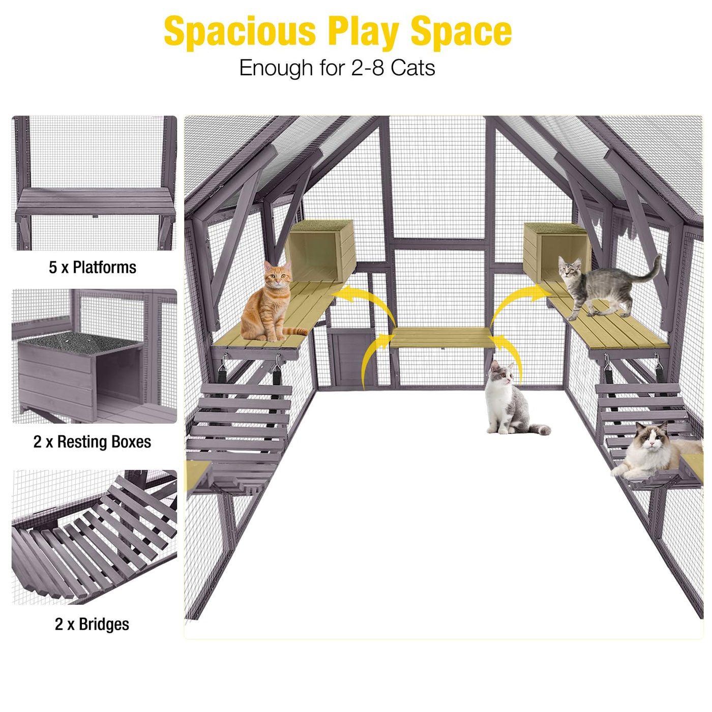 56.54Ft Outdoor Cat Enclosure With 2 X Bridges, 2 X Sleeping Houses, 7 X Cat Walks. Offers A Large Space For Your Cats To Enjoy Running And Playing Freely. And Theres Plenty Of Room For You To Join In; Or Just Sit Back And Watch Them Frolic In Their New Favourite Spot.