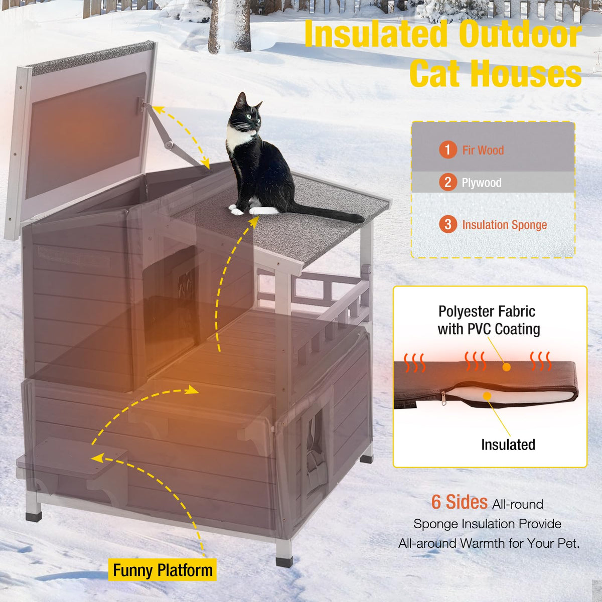 Aivituvin Insulated Outdoor Cat House For Winter Weatherproof Outside Feral Cat Shelter With Liner