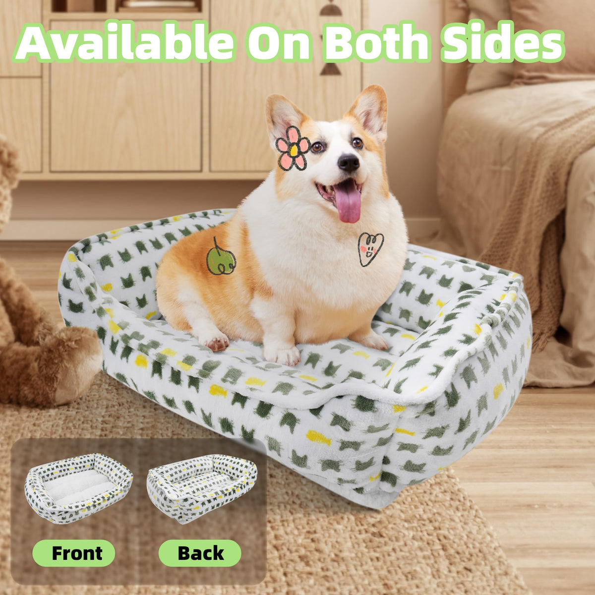 Aiwikide Dog Sofa Bed, Anti-Anxiety Bed For Dog, Rectangle Washable Bed With White Mattress, Large