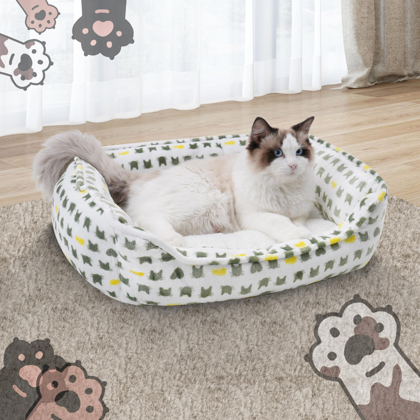 Aiwikide Dog Sofa Bed, Anti-Anxiety Puppy Cuddler Bed For Puppy Dog & Cat, Rectangle Washable Bed With White Mattress, Extra Sma