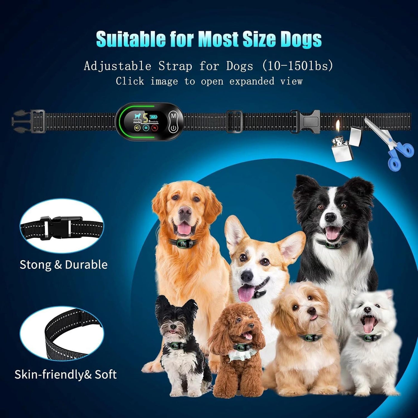 ?Comfortable for all sizes of Dogs? AKUVU No Barking collar measures 25inches. This dog bark collar strap made of skin-friendly and durable nylon fits dogs over 10-150lbs with neck sizes 6-27.5 inches.Adjustable anti barking collar for dogs size so you can keep using it as your dog growsAKUVU dog bark collar for large dog medium dogs With IP67 waterproof your dogs will enjoy bathing swimming chasing toys around a pool or playing in the rain can also be used.
