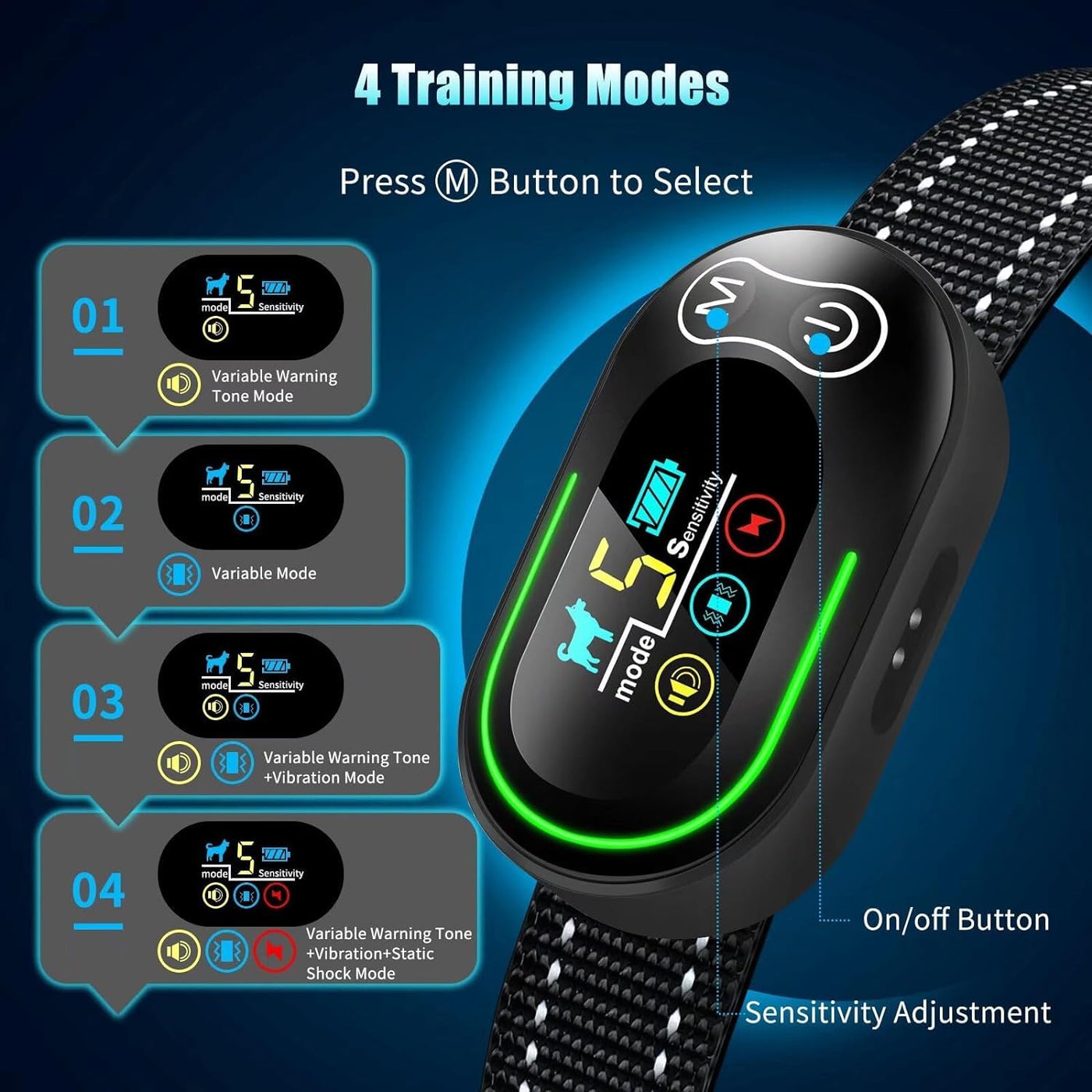 ?Upgraded Technology No More False Triggering? Adopts advanced smart dog bark recognition chip and motion detection technology. it is only activated when both vocal cord movement and barking are detected. This technology safely and effectively filter other dog's barking preventing false triggering and protecting your dog from unnecessary punishment.In addition it is equipped with night vision reflective woven belt to ensure the safety of dogs at night.