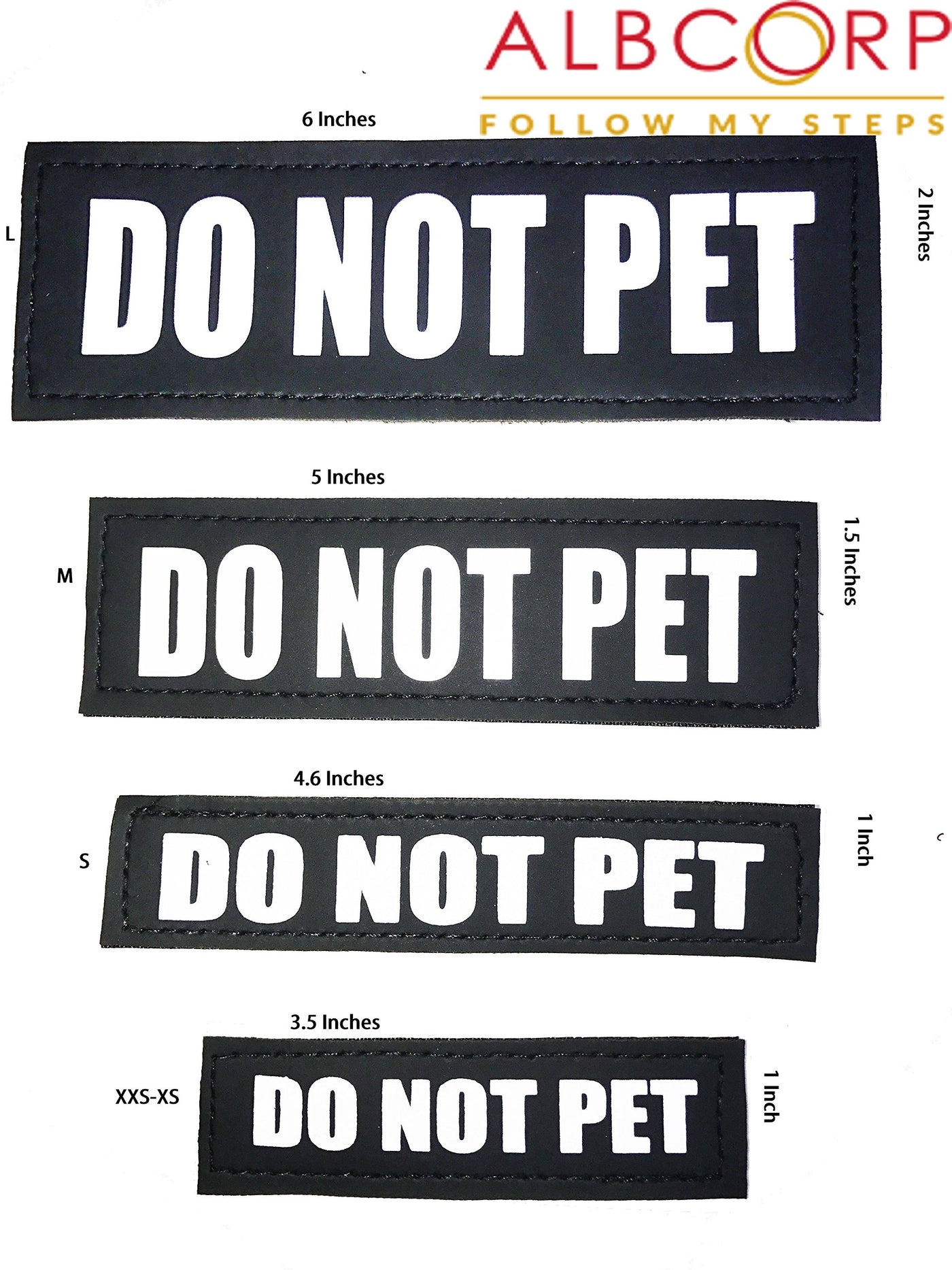 Set Of 2 Do Not Pet Reflective And Removable Hook & Loop Patches For Xxs-Xs- Sm - M - L- Xl-Xxl Size Animal Vests And Harnesses Why You Should Buy Our Patches? Our Do Not Pet Patches With Hook And Loop Backs Allow You To Change The Identification Of Your Service Dog Vest Or Harness In Just A Few Minutes Featuring Large, Reflective Lettering That Are Recognizable Even From A Distance. Whether You Have More Than One Service Dog Or Your Service Dog Has Multiple Jobs, The Patches Help To Indicate Its Function Or Status At Any Time And In Any Location. You Can Easily Convert A Do Not Pet Vest To ''In Training'' - Service Dog - Therapy Dog Service Animal Vests Ensure That The Public Sees Your Companion As A Working Dog And Not Just A Family Pet. It Is Essential That The Vest Reflects The Functionality Or The Current Status Of A Service Dog Wearing It By Using The Appropriate Service Dog Patches. You Will Also Receive Assistance From Knowledgeable Customer Service Professionals Working For More Than 10Yr With Pets, To Answer Your Questions About Albcorp Do Not Pet Patches Or Even More. Albcorp Service Dog Patches Are Available In Six Designs: ''Service Dog'', ''In Training'', ''Do Not Pet'' And ''Service Dog In Training'' Emotional Support ''Therapy Dog''. Each Service Dog Patch Is Constructed From Durable Polyester And Has A Hook Back. It Can Be Attached To Any Type Of Service Dog Vest That Has A Hook And Loop Strip Or Sewn On To Vests If There Is No Hook And Loop Attachment Available. These Patches Make It Easy To Update Your Dog'S Status And Help You Save Money By Allowing You To Use A Single Vest For Multiple Dogs. Do You Need More? Contact Us And We Will Take Care Of You. Click The Add To Cart Button Now!