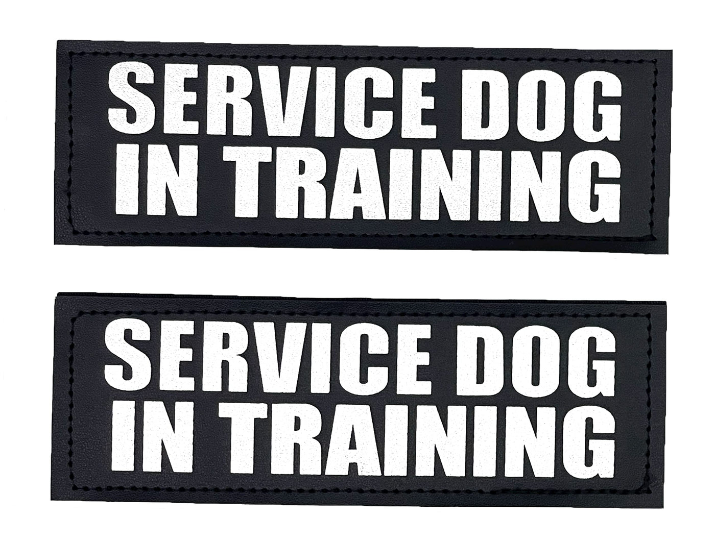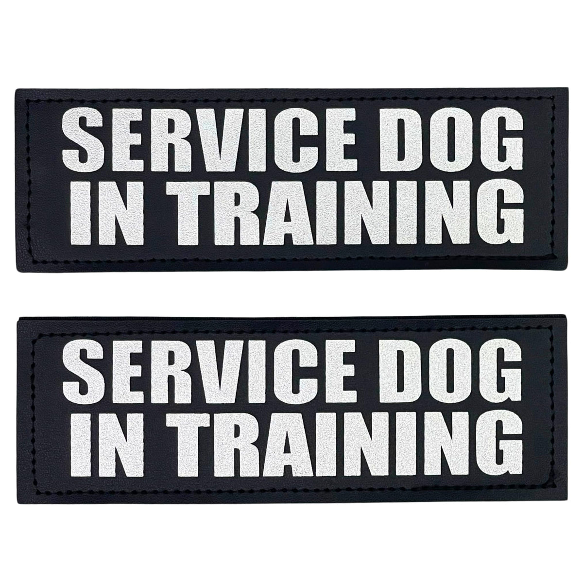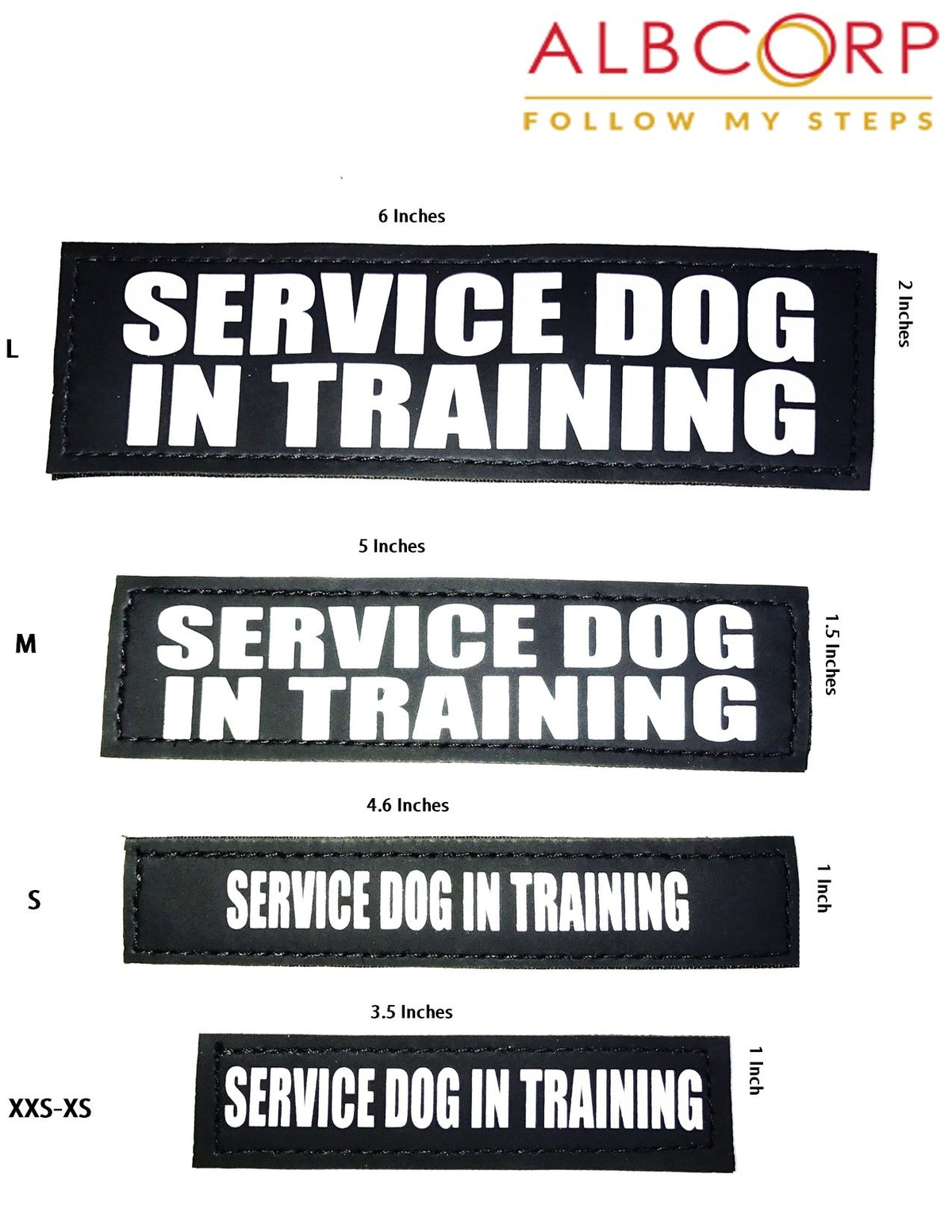 Set of 2 SERVICE DOG IN TRAINING Reflective and Removable Hook and Loop Patches for XXS - XS - Sm - M - L- XL-XXL size Animal Vests and Harnesses Why You Should Buy Our Patches? Our Service Dog Patches with Hook Backing allow you to change the identification of your service dog vest or harness in just a few minutes featuring large, reflective lettering that are recognizable even from a distance. Whether you have more than one service dog or your service dog has multiple jobs, the patches help to indicate its function or status at any time and in any location. You can easily convert a service dog in training vest to 'EMOTIONAL SUPPORT' or DO NOT PET- THERAPY DOG- SERVICE DOG Service animal vests ensure that the public sees your companion as a working dog and not just a family pet. It is essential that the vest reflects the functionality or the current status of a service dog wearing it by using the appropriate service dog patches. You Will Also Receive Assistance from knowledgeable customer service professionals Working for more than 10Yr with pets, to answer your questions about ALBCORP Service Dog In Training Patches or even more. ALBCORP Service Dog Patches are available in five designs: 'SERVICE DOG', 'SERVICE DOG IN TRAINING ''IN TRAINING', 'DO NOT PET' and 'THERAPY DOG'. Each service dog patch is constructed from durable polyester and has a Hook and Loop back. It can be attached to any type of service dog vest that has a Loop strip backed, or sewn on to vests if there is no Loop attachment available. These patches make it easy to update your dog's status and helps you save money by allowing you to use a single vest for multiple dogs. Do You Need More? Contact us and we will Take Care of You. Click the Add to Cart Button Now!