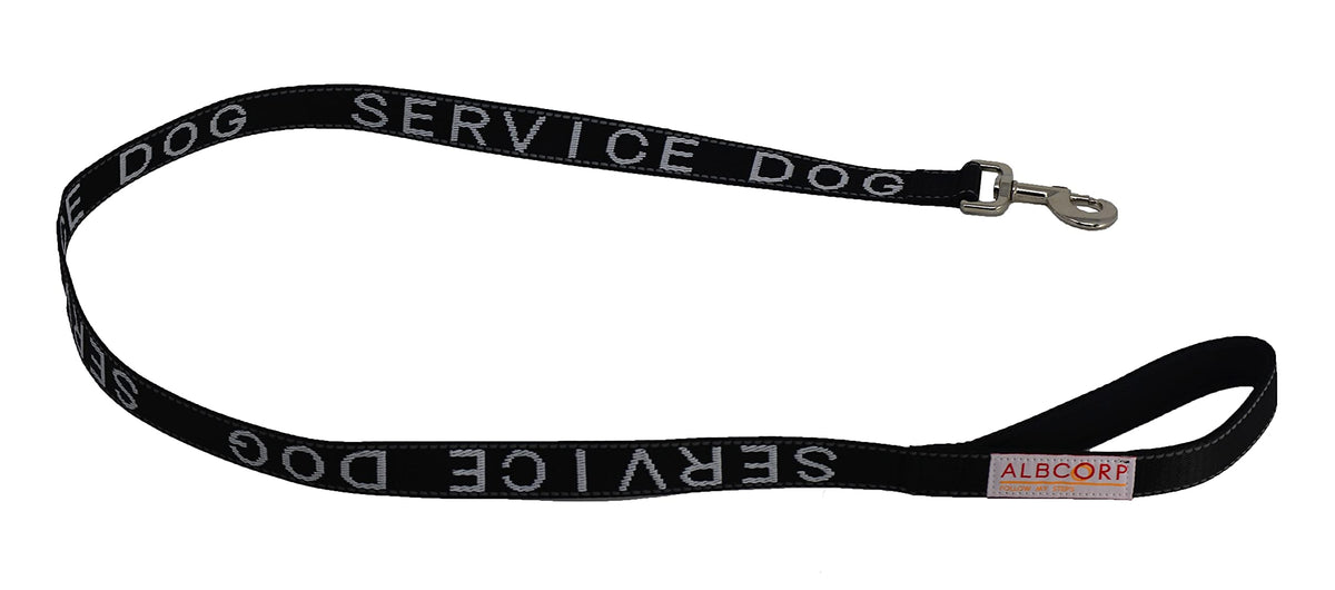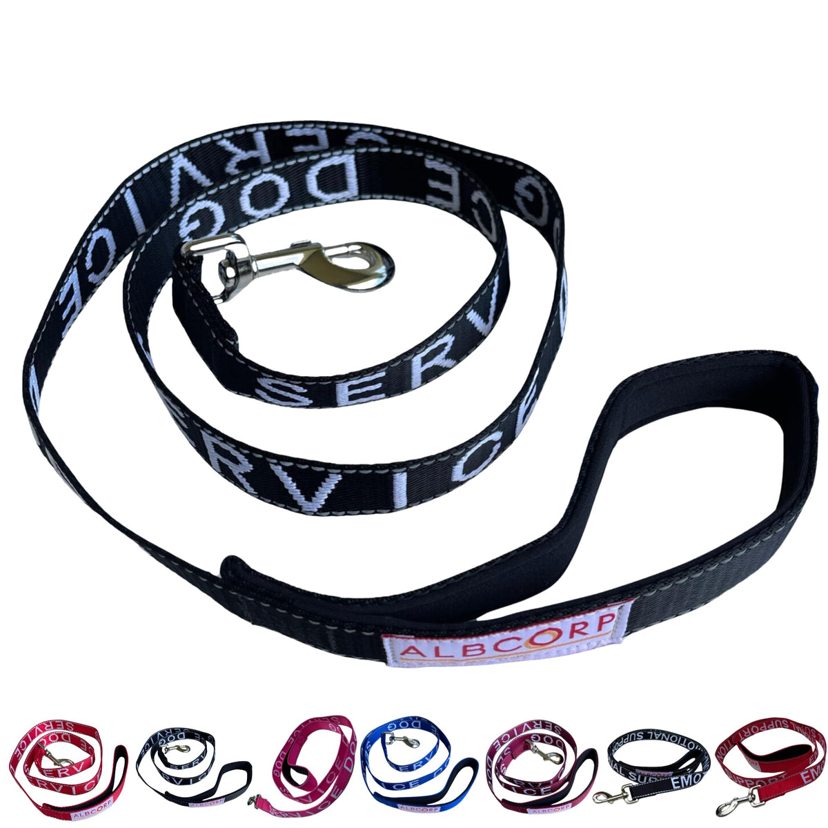 Albcorp Service Dog Leash - Embroidered- With Padded Neoprene Handle And Reflective Threads, 4 Feet, For Harnesses, Vests Or Col