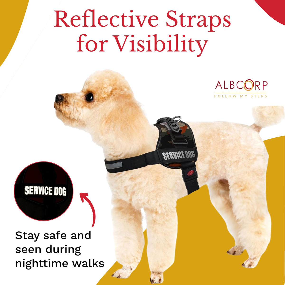 Albcorp Service Dog Vest Harness - Reflective - Woven Polyester And Nylon, Comfy Mesh Padding - Sizes From Xxs To Xl - Service Dog Patches Included. Green Camo, Small