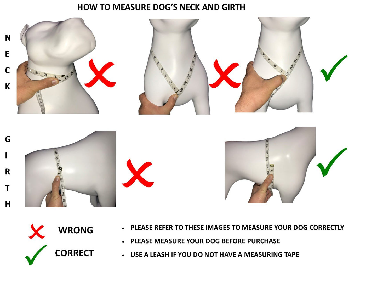 Please measure your dog's girth chest following our image instructions and size chart before the purchase.