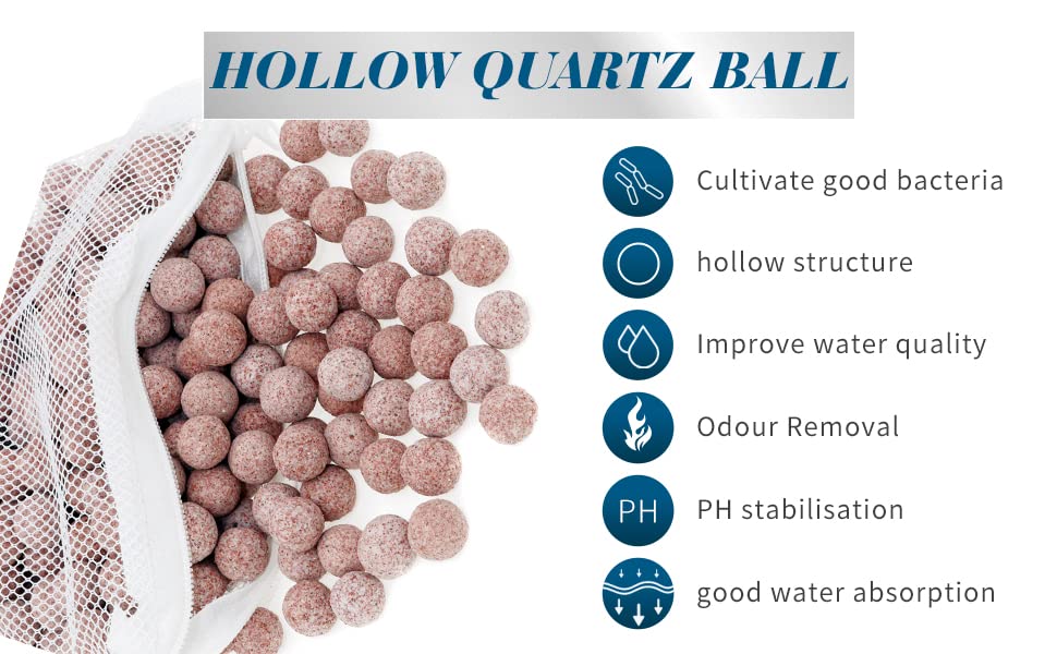 Q: How does the ceramic bio filter media improve water quality?A: This bio filter media enhances water quality by effectively absorbing fish waste and debris, which helps to provide crystal clear water for fish to thrive. Additionally, it promotes oxygenation and supports the gas exchange process in the aquarium.