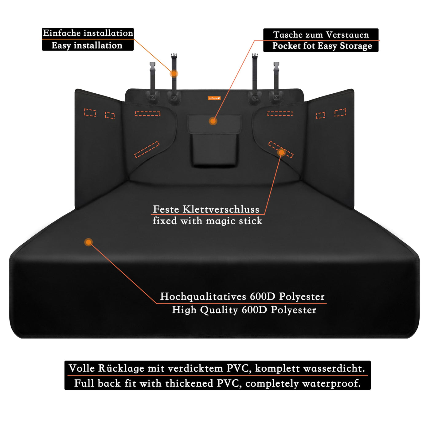 ✅【Fit for Medium Cars】Size: 185 x 105 cm / 72.8 x 41.3 inch. Alfheim car boot liner cover fits all most Medium and Small cars, trucks and SUV. Please check the dimensions of your car boot before purchasing. Comes with adjustable headrest straps and a large bumper protector that can be folded to length our car boot liners. As this universal fit size, perfect for carrying pets to travel out. Your dog will be comfortable, and you won't have to worry about dirt, dander or claw marks in your car. | ✅【WATERPROOF & EASY TO CLEAN】Alfheim Car Boot Liner is made of the Oxford cloth, the car boot liner protector is washable, wipeable and easy to dry. When the cover gets dirty, you can remove it with ease and launder it in the washing machine to get it fresh, clean and ready for use again. | ✅【No Slip & Multi-Function】You don't want your pup to be tossed back and forth when you're on the go! That's why our cover has a rubberized backing that allows it to stay in place through every turn have to worry about dirt, dander or claw marks on your seats. Alfheim boot liner cover can be used at the time of camping or any other situation that needs liner. There are a handy pocket for you to keep your things. | ✅【EASY TO INSTALL】Excellent size of 185x105x36cm / 72.83x41.34x14.17inch. Fits for most medium and small cars. Alfheim Car Boot Liner is fitted with special closures and fasteners making both installation and storing quick and easy. Tighten 2 adjustable buckles to the headrests of the car's rear seat. There are 8 magic stickers or 4 Sticky strip to glue on the car’s wall, which can effectively preventing slippage and convenient to fold. There are a handy pocket for you to keep your things. | ✅【DURABLE】Our dog Cargo Liner is made from the finest of materials to allow it to stand the test of time! Your car will be more beautiful when decorated with a seris of Alfheim products, e.g. front seat cover, back seat cover, and ,cargo liner.All of them are produced from a integrated design, which have a comfortable style and a unified color.