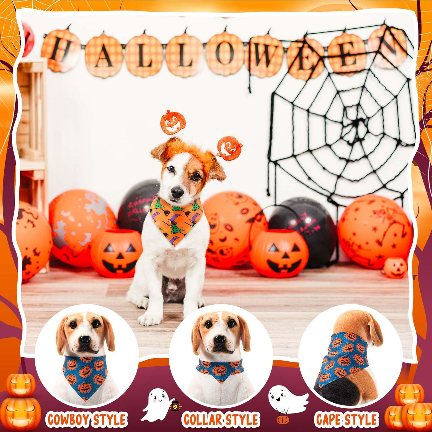 Aliceset 180 Pcs Halloween Dog Bandanas Bulk Halloween Bandana for Dog Adjustable Washable Pet Triangle Scarf Cute Kerchief Scar