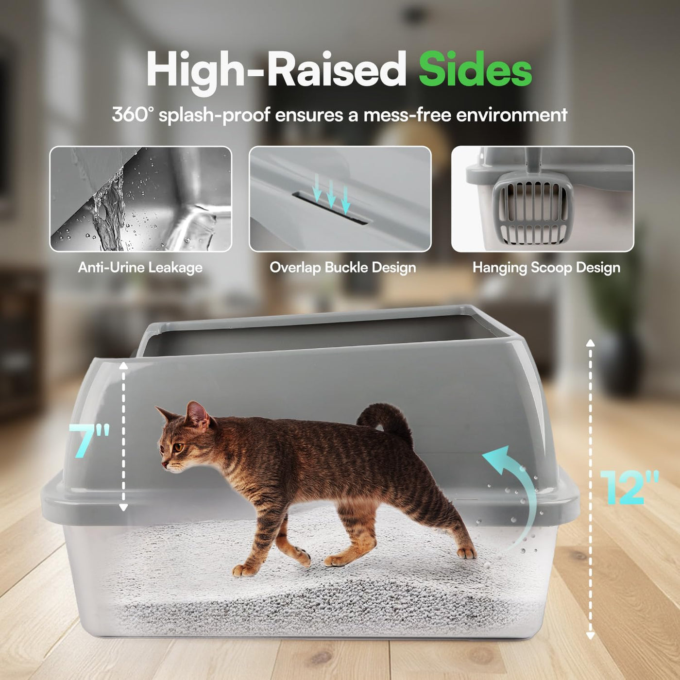 All For Paws Stainless Steel Cat Litter Box With Litter Mat For Big Cats Xl Metal Litter Pan With High Sides Enclosure Kitty Lit