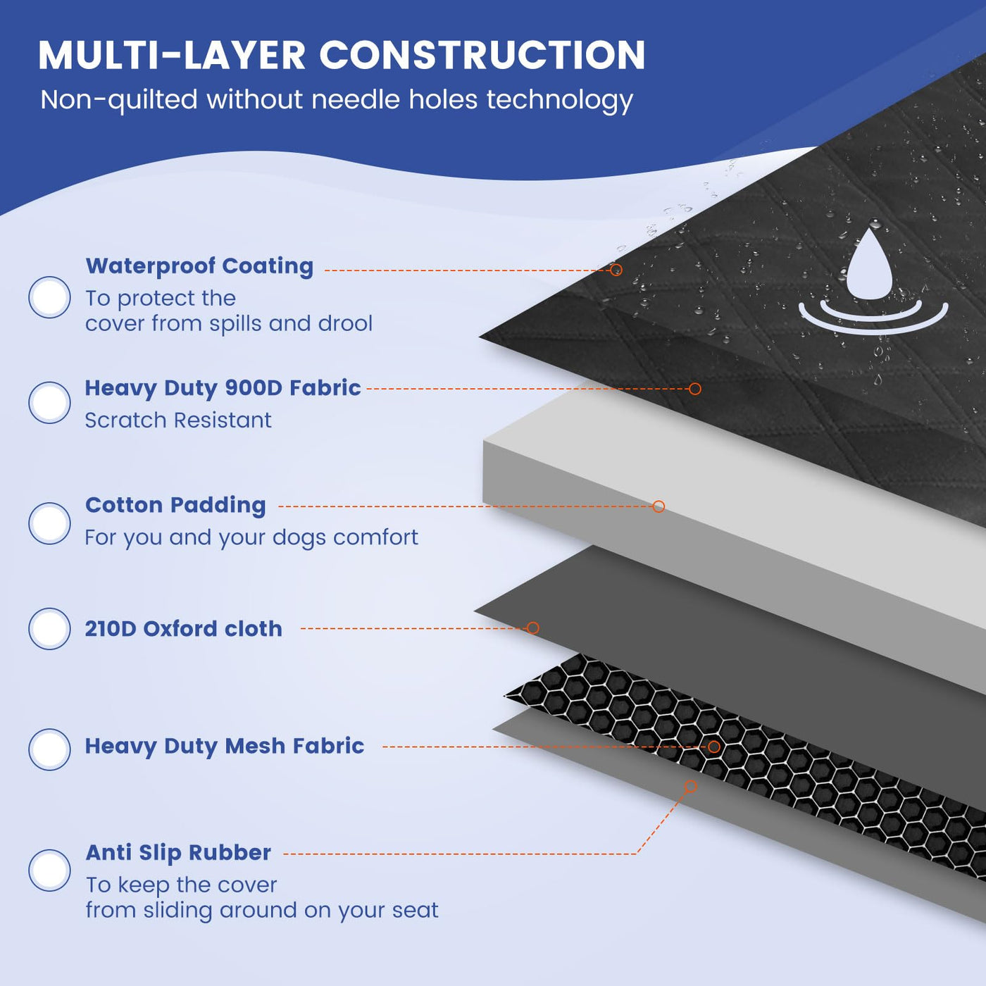 This is a car seat protector designed specifically for back bench seats , It protects your back seat from juice, mud or other messes as a daily use rear seat cover. Make your back seat clean. 1. NONSLIP & WATERPROOF - Waterproof. We use heavy duty, durable and scratch proof material.Bottom material is high quality nonslip mesh, corner elastic straps and seat anchors at backing to prevent it from sliding around. Can be used for dogs or conveying groceries 2 . EASY TO INSTALL & CLEAN - Easy to install with buckle straps. Snap them around back headrests and tuck in seat anchors. Secure side elastic straps around seat corners. Easy to clean with a damp cloth or vacuum. Machine wash in gentle cycle 3. MIDDLE SEAT BELT & ARMREST COMPATIBLE - 2 zippers for middle seat belt and armrest. Can be used for 3 passengers. Un-zip the cover and pull the seat belt through and re-zip the cover. Un-zip 2 zipper to use the armrest 4. HIGH COMFORT - The material of Dog Car Seat Cover is soft and comfortable, without irritating your dog's skin, allowing your dog to enjoy comfort during the journey. 5. FITS MOST CARS, TRUCKS, & SUVS - The ALLANSING cover fits Most back bench seats and is extra-large for maximum coverage. Front and side flaps provide full coverage to protect your entire seat. No more fur and mud on your upholstery! 6. SPACE SAVING - The Dog Car Seat Cover has a compact design that allows for easy folding and storage without taking up too much space, making it perfect for travel.