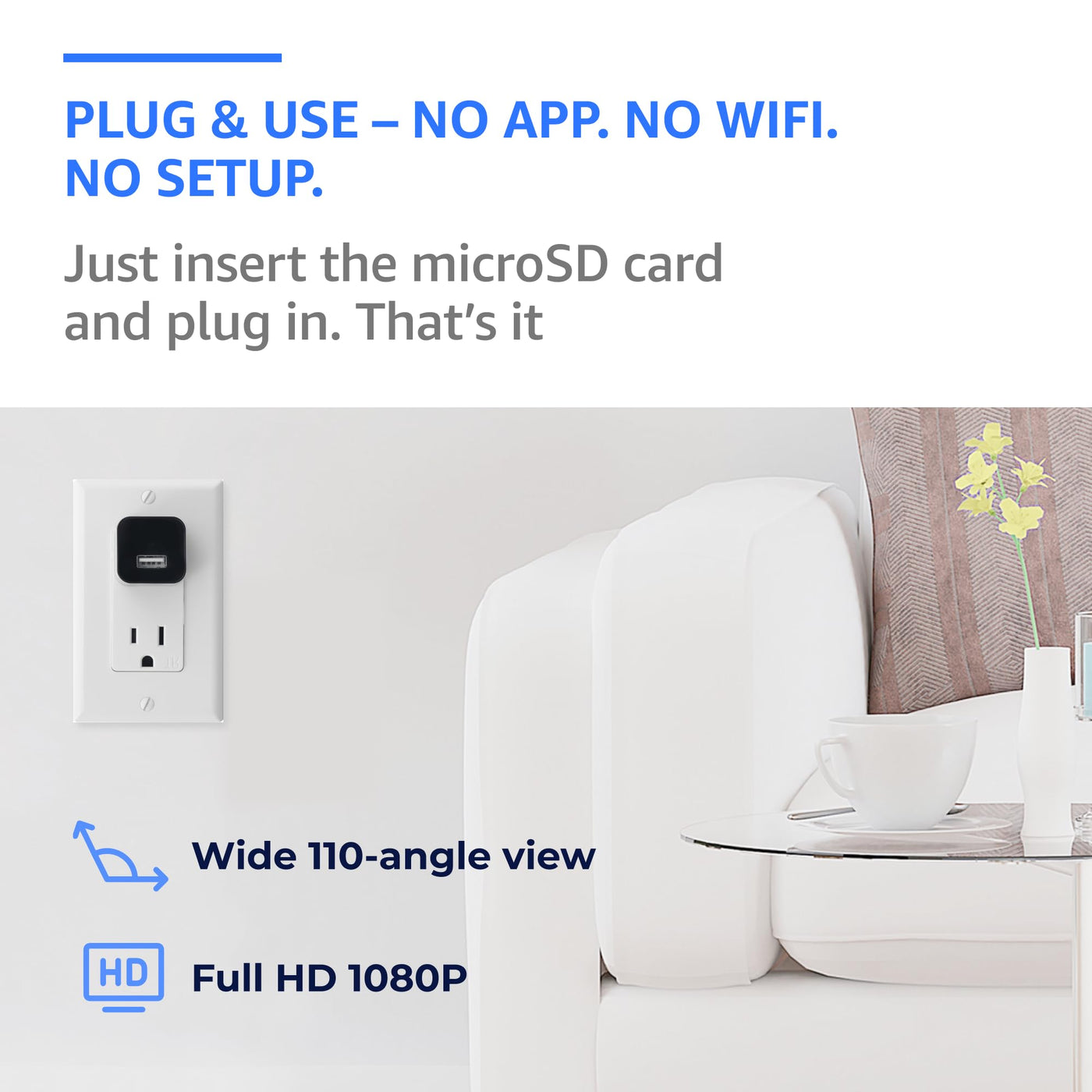 Alpha Tech Plug-In 1080P Hd Mini Camera - Premium, 110 Wide View - Plug & Use - Wifi-Free Setup - Compact Usb Cam For Simple, Re