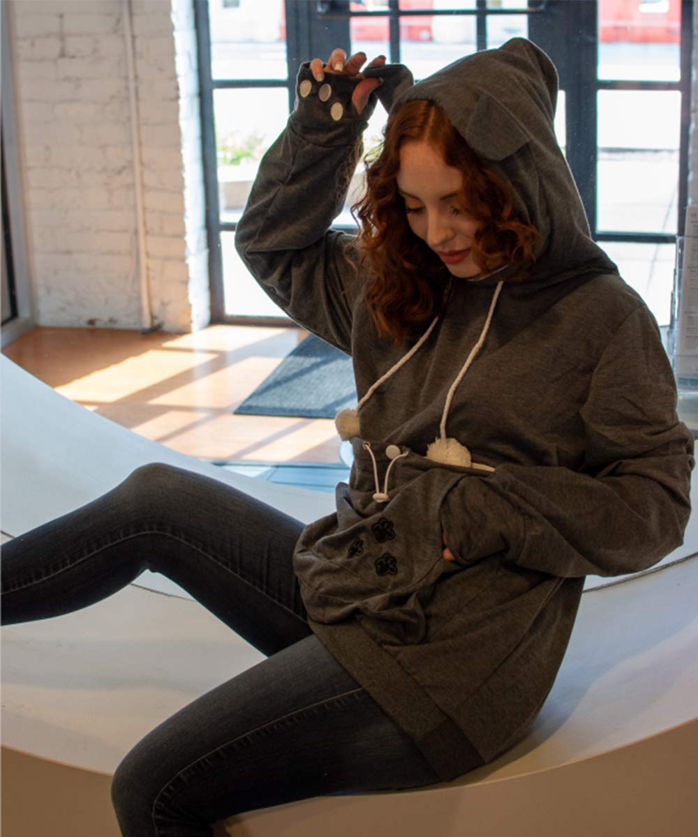 Alyc Unisex Hoodies Pet Holder Cat Dog Large Pouch Carriers Pullover With Cat Printing Sweatshirt (Dark Grey-Classic Version, Xx