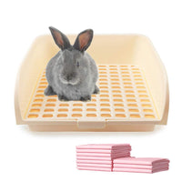 Q: What materials is the litter box made from?A: The Amakunft Large Rabbit Litter Box is made from durable, pet-safe plastic. This ensures it is long-lasting and safe for your pets.
