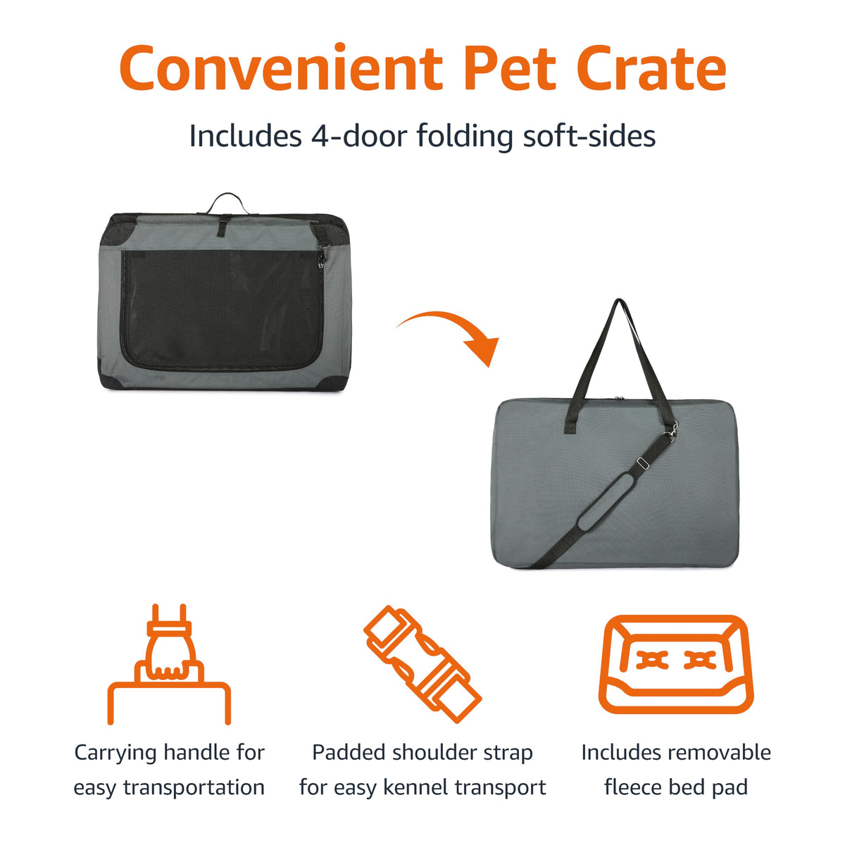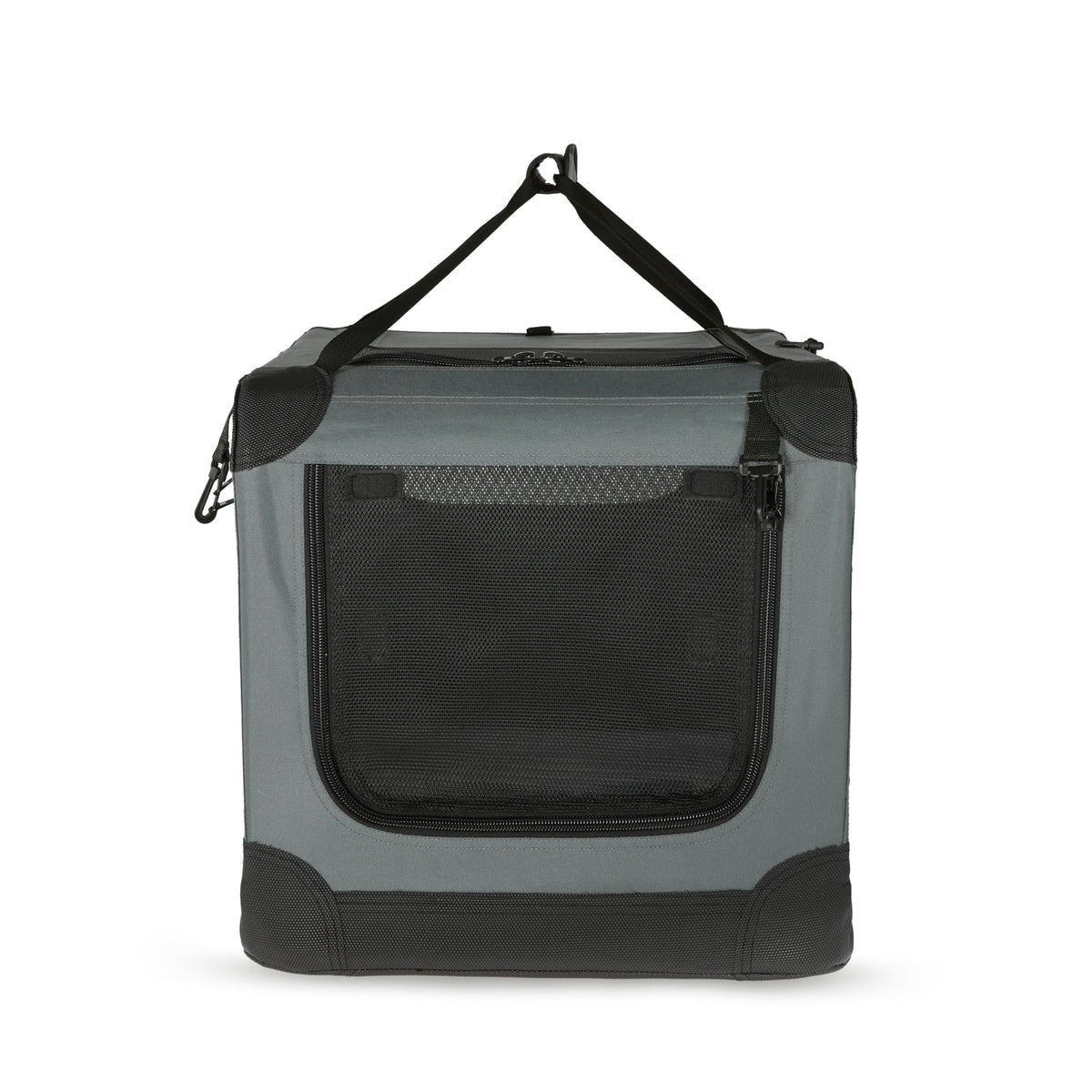 Amazon Basics 4-Doors Portable Soft-Sided Folding Travel Crate Kennel For Cat, Dog, And Other Small Animals, Grey, M 30'' X 21''