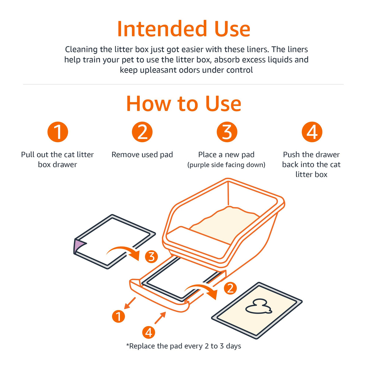 Amazon Basics Cat Pee Pads, 60 Count, Universal Fit For Litter Box, Odor Control, Unscented, White/Purple