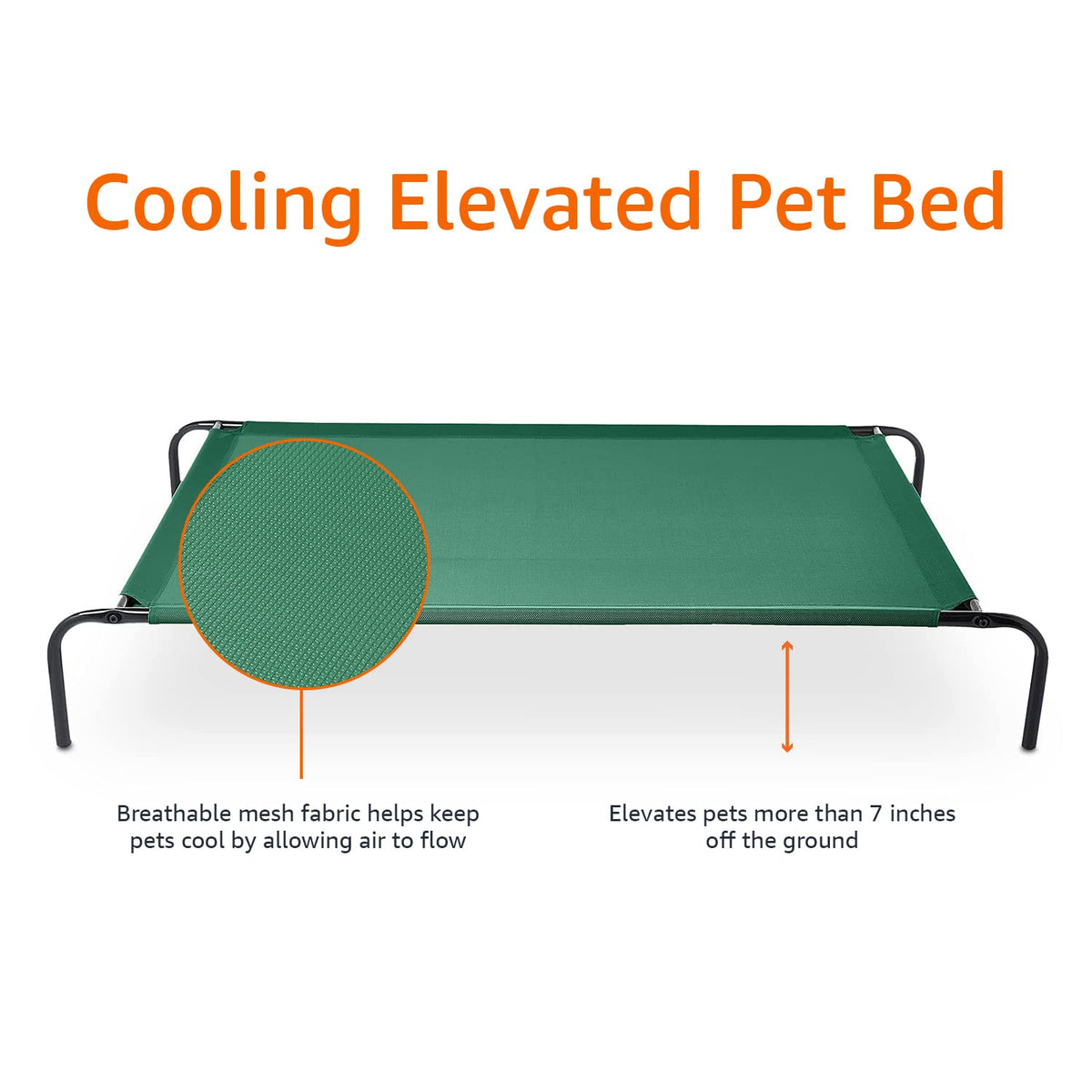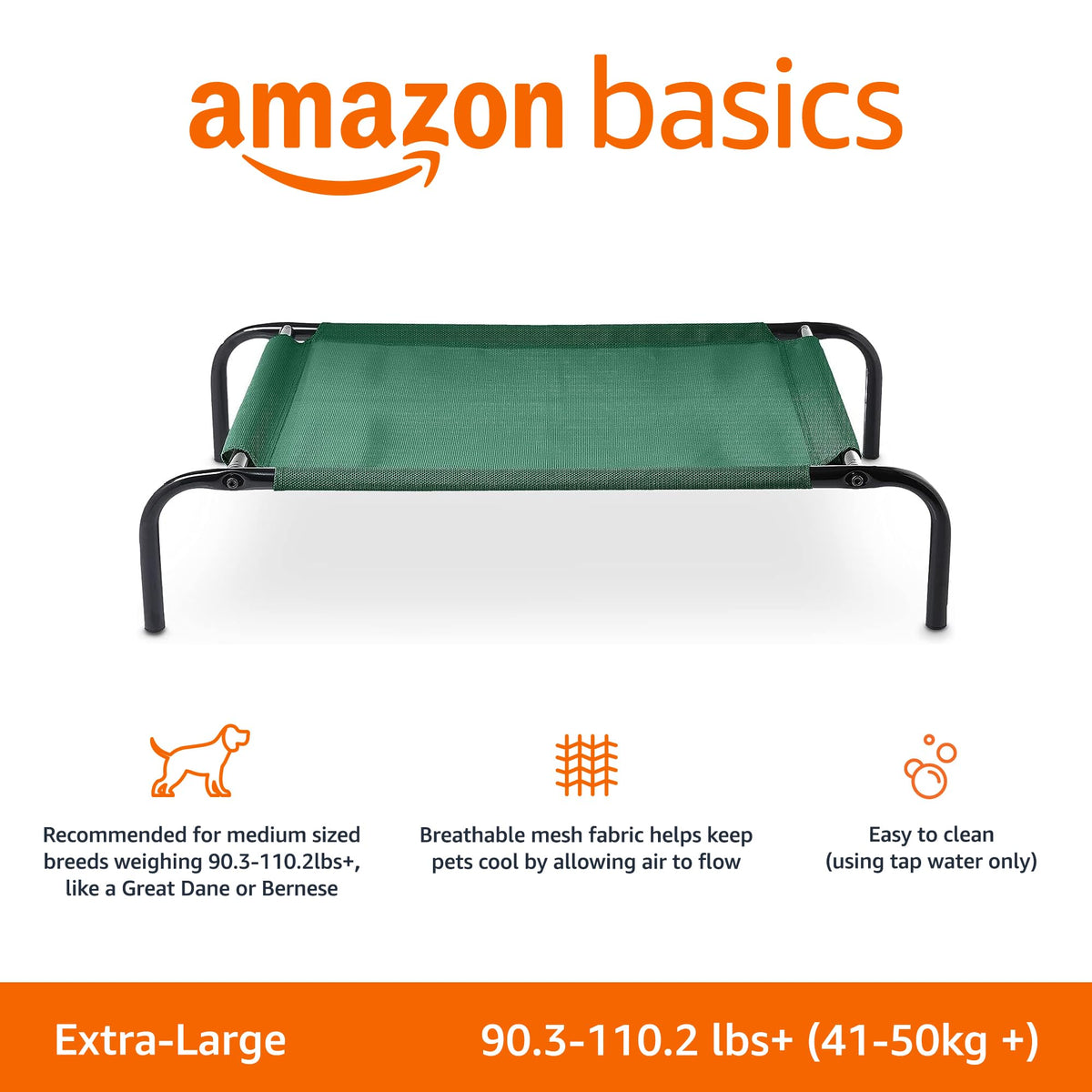 Amazon Basics Cooling Breathable Elevated Dog Bed With Durable Metal Frame, For Large Dogs, X-Large, 60 X 37 X 9 Inch, Green