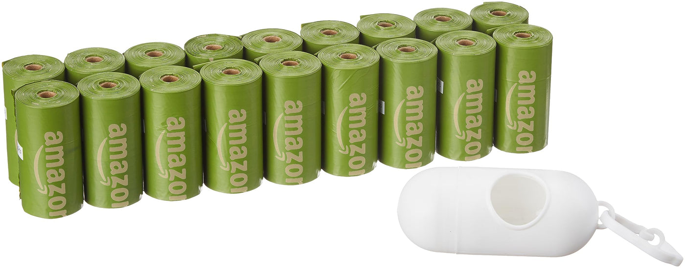 Amazon Basics Dog Poop Bags With Dispenser, 270 Count, Enhanced For Guaranteed Leakproof, Brazilian Mango Scented, Includes Leas
