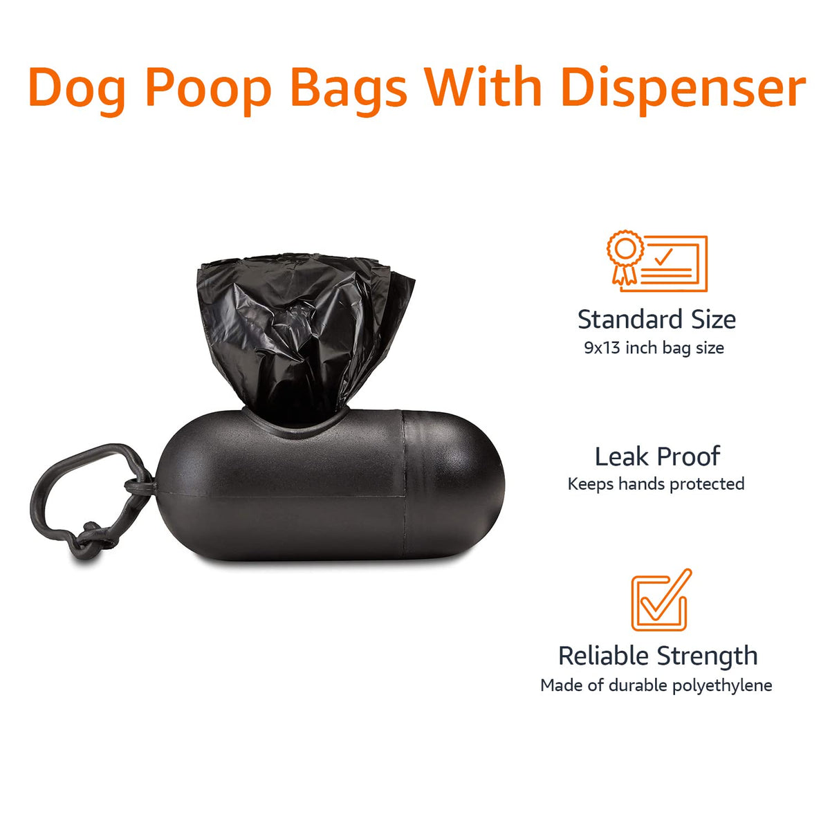 Amazon Basics Dog Poop Bags with Dispenser, 600 Count, Leakproof, Unscented, Black, Model 100340-APL