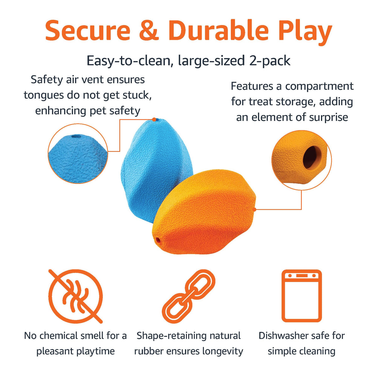 Amazon Basics Dog Treat Dispensing Enrichment Chew Toy, 2-Pack, Large, Multi Color