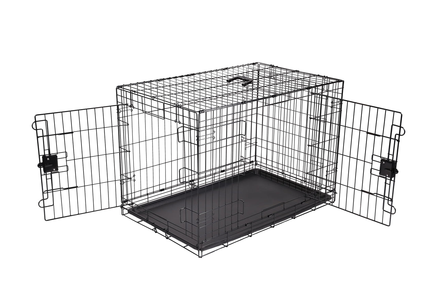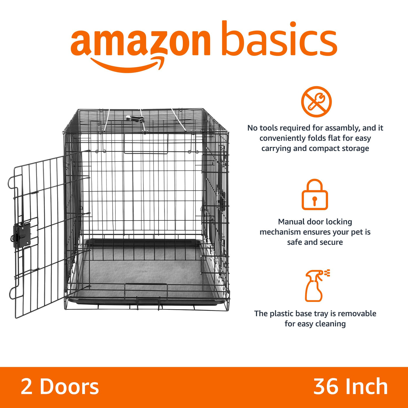 Amazon Basics Durable, Foldable Metal Wire Dog Crate With Tray, Double Door, 36 X 23 X 25 In, Black