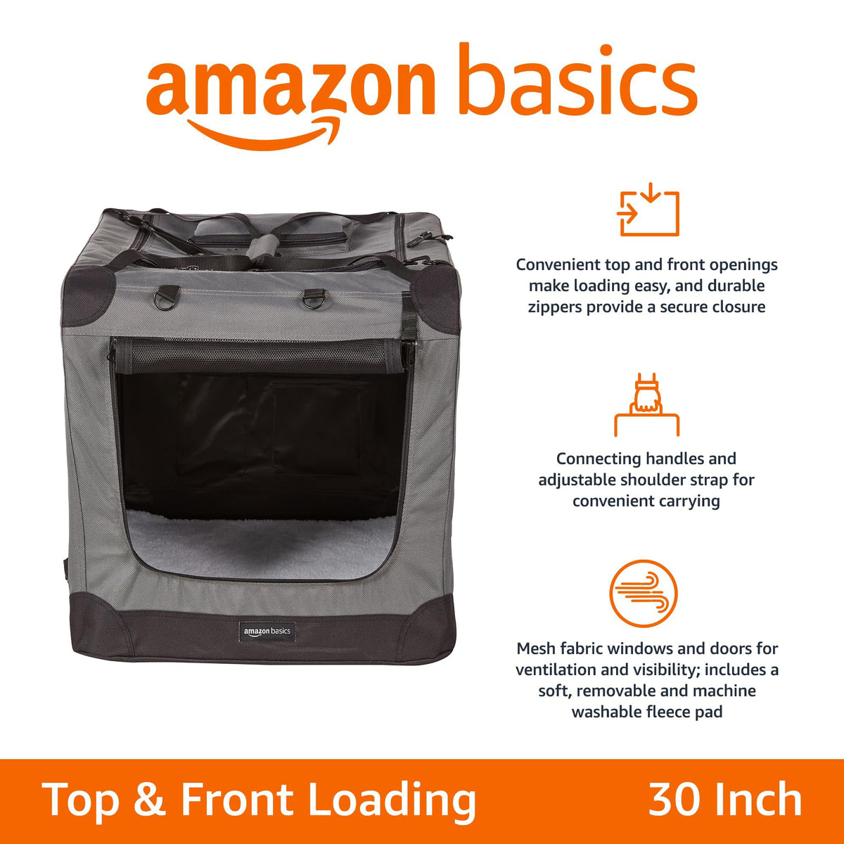 Amazon Basics Folding Portable Soft Pet Dog Crate Carrier Kennel, 30 X 21 X 21 Inches, Grey