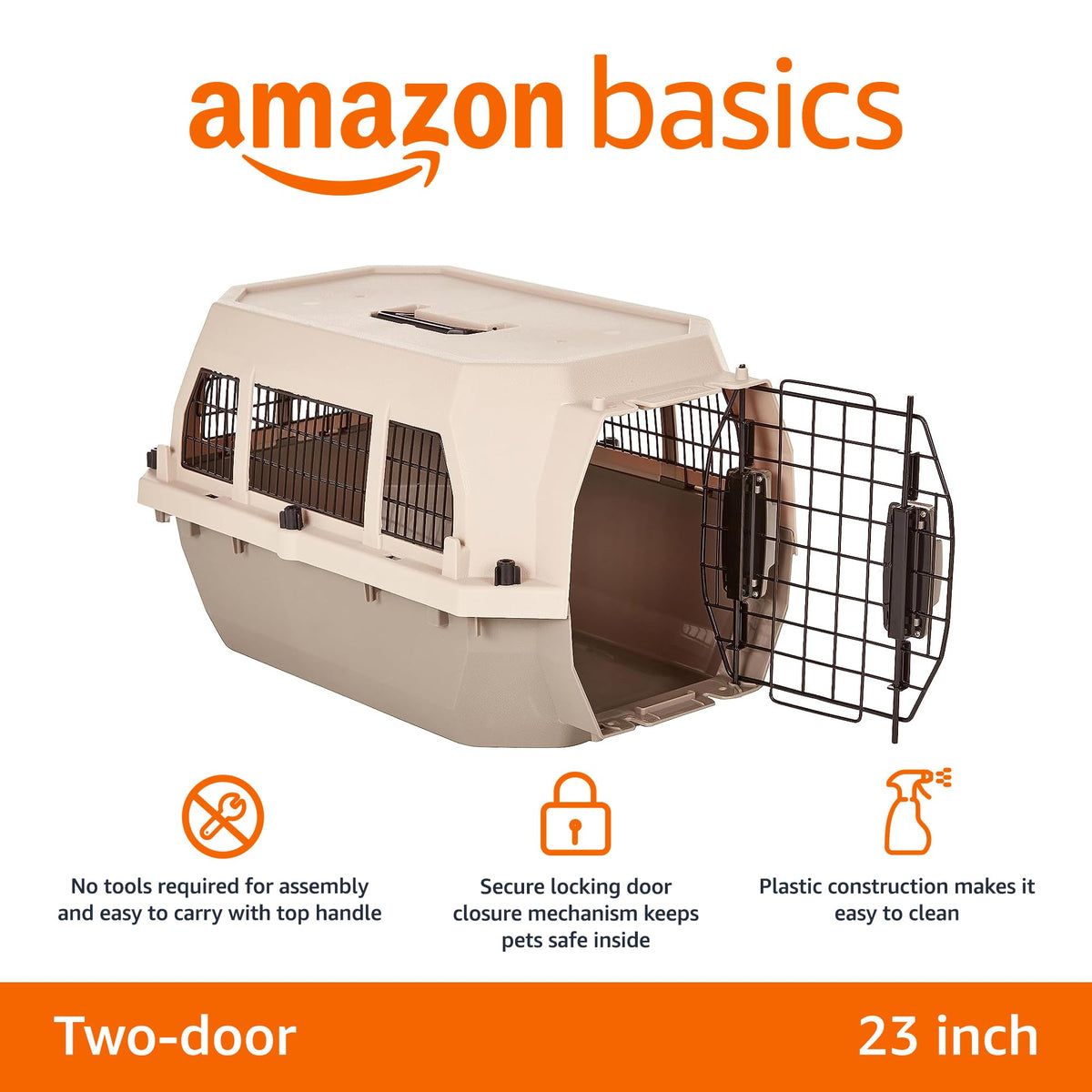 Amazon Basics Hard-Sided Dog And Cat Kennel Single-Door Travel Pet Carrier With Metal Wire Ventilation, 23.6''L X 15.7''W X 13.0