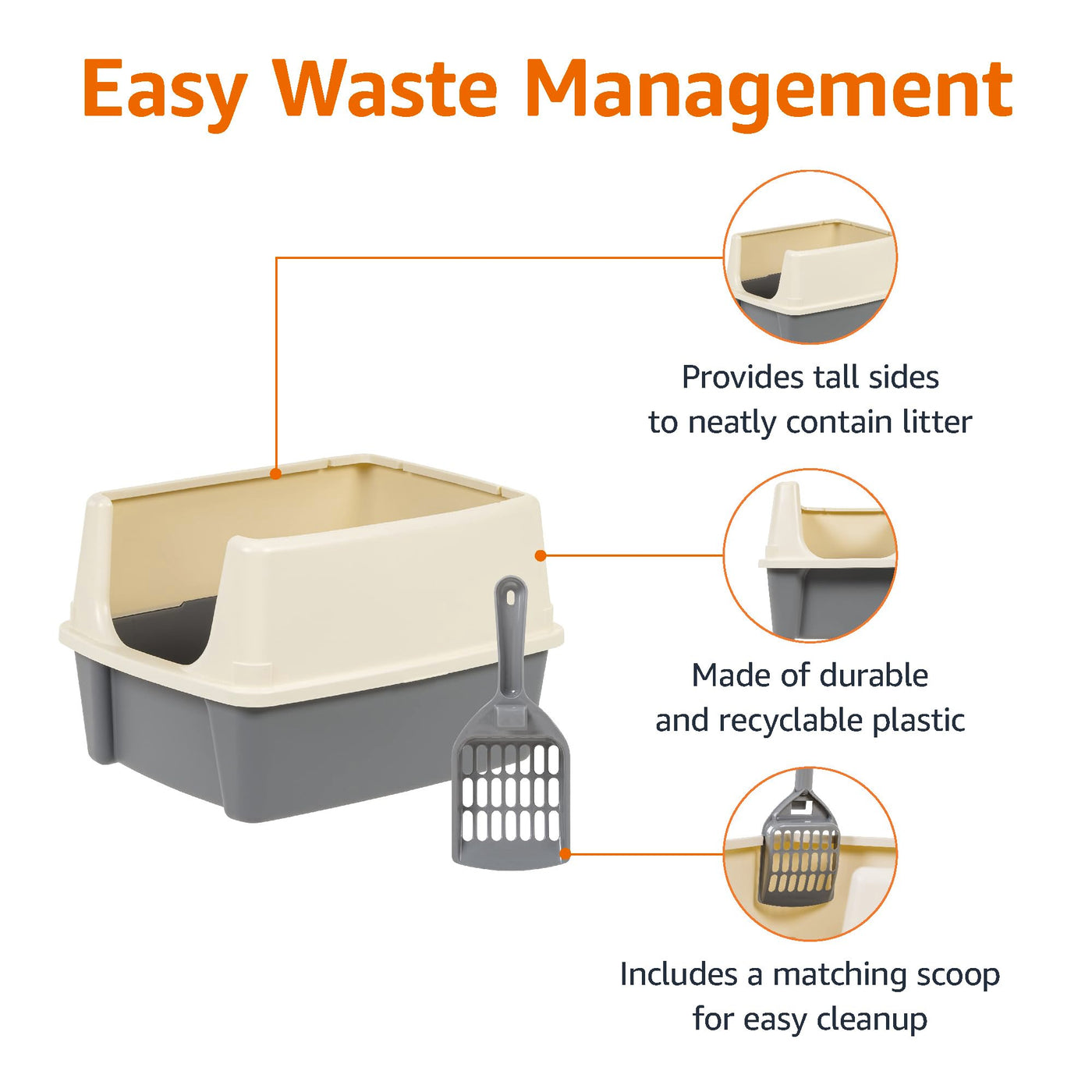 Amazon Basics Large Cat Litter Box With High Sides, Open Top, Includes Scoop, 19 X 15 X 11.75 Inches, Grey/Beige