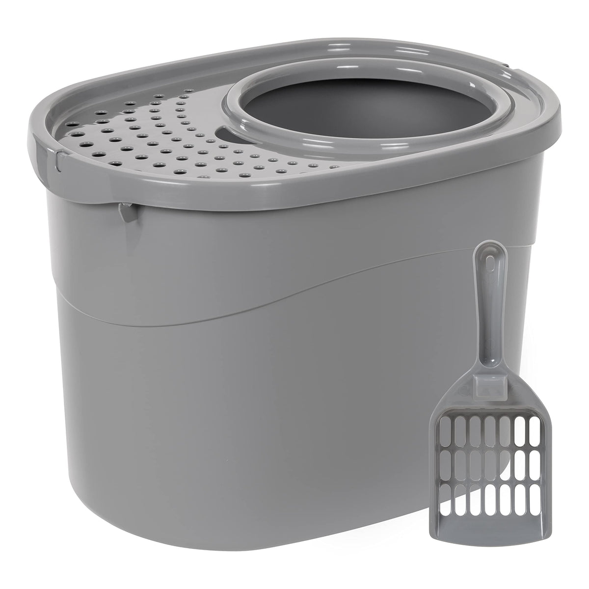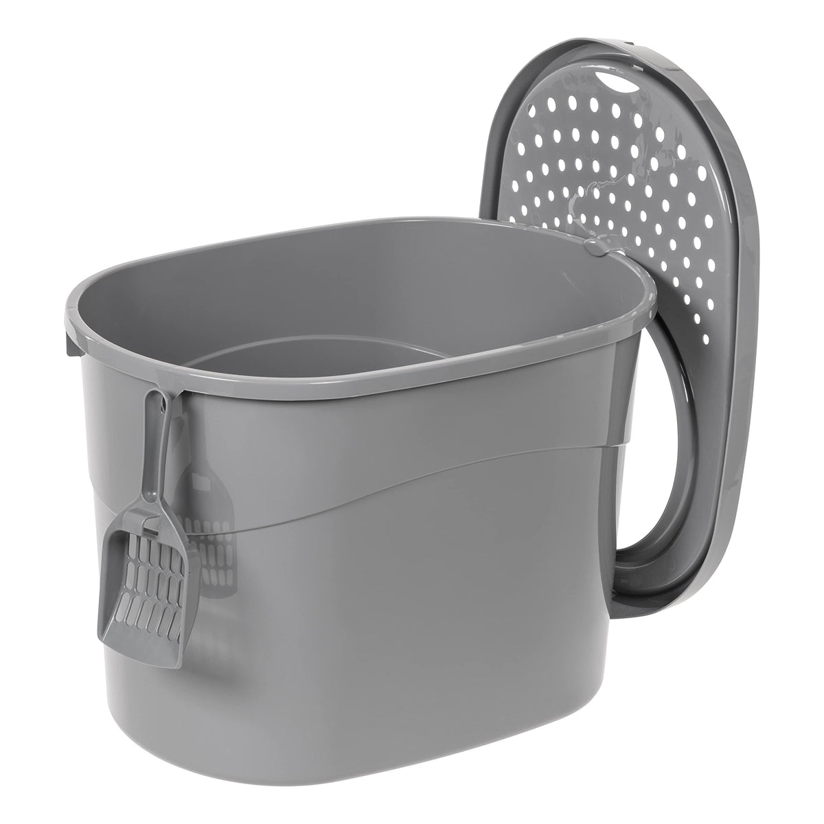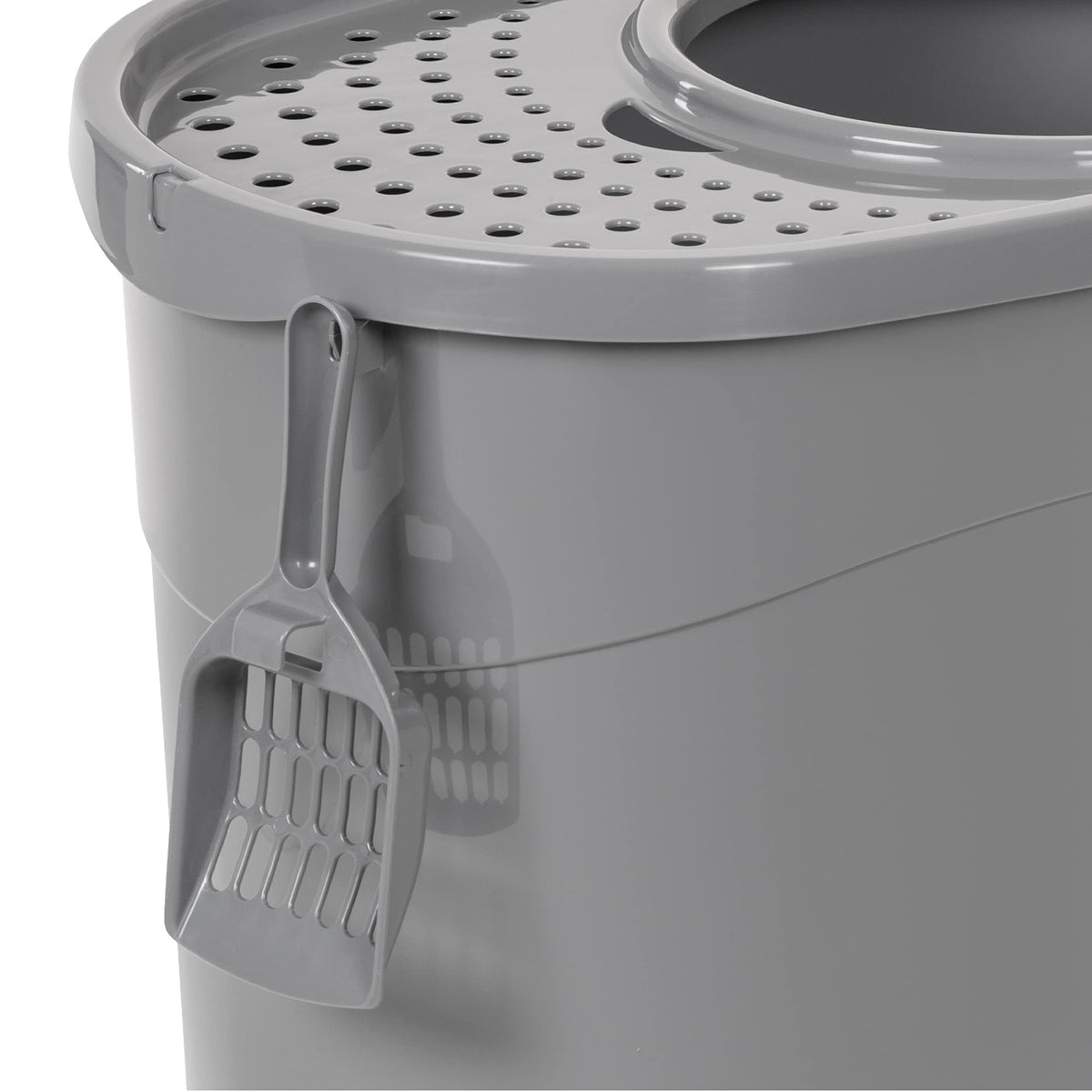 Amazon Basics Large Cat Litter Box With High Sides, Top Entry, Includes Scoop, 20.5 X 14.75 X 14.38 Inches, Grey