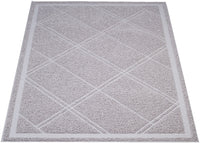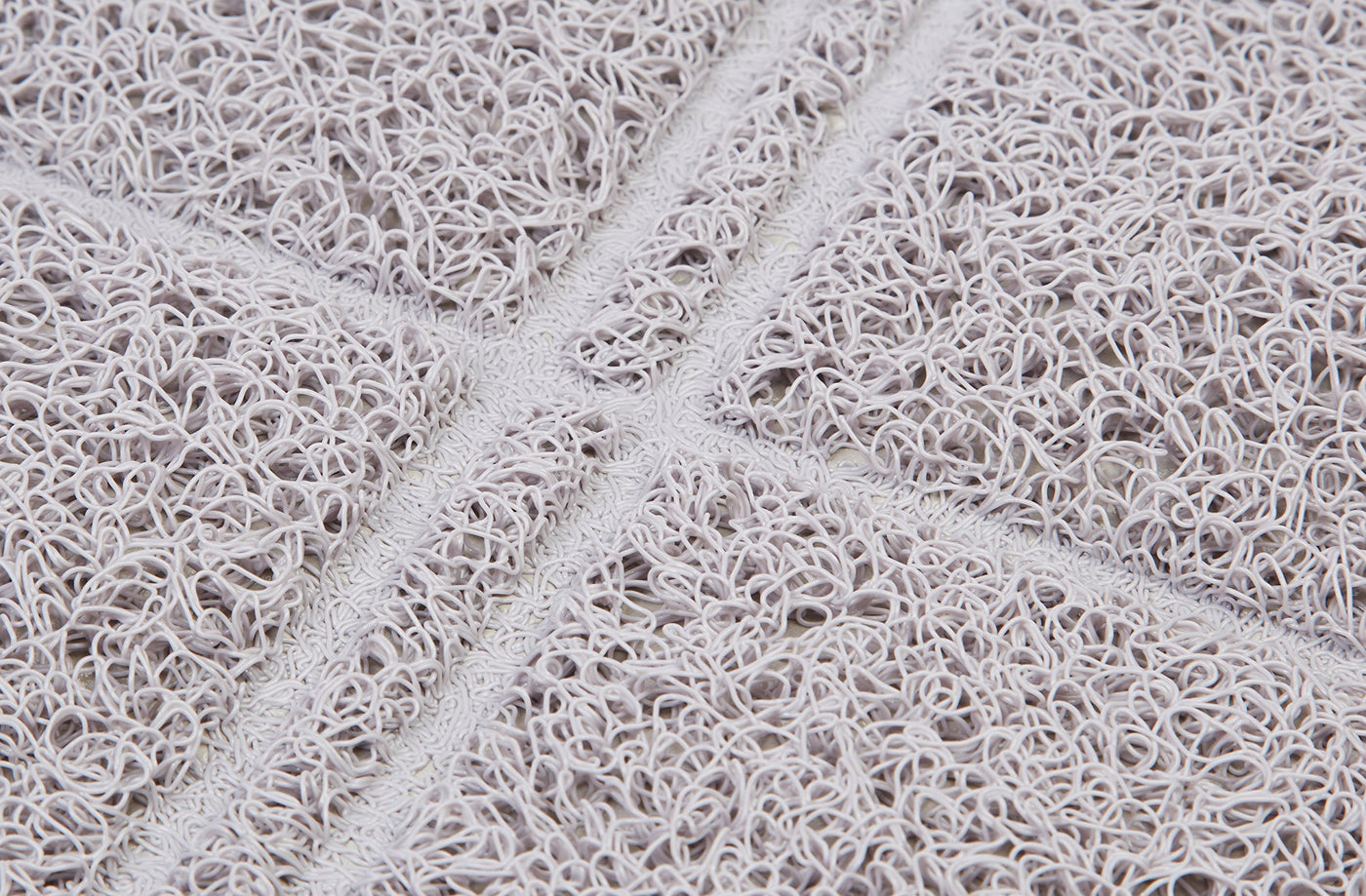 Q: How does this litter mat minimize tracked litter?A: This litter mat features litter-trapping grooves arranged in a crisscross pattern. These grooves effectively capture and hold litter particles that may be tracked out of the box, helping to keep your floors clean.