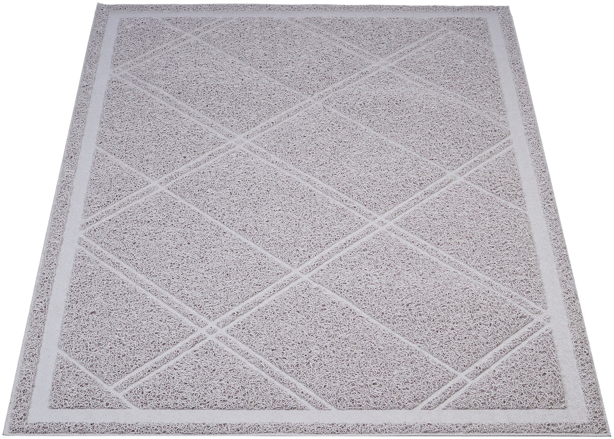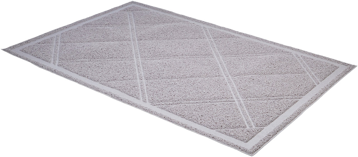 cat-litter mat minimizes tracked litter and helps protect floors Litter-trapping grooves in a crisscross pattern of diamonds and a deep border along the edge Soft step-able surface ensures comfort for sensitive kitty paws Durable PVc material elegant style in a solid gray color Measures 35 by 24 inches (LxW) backed by an Amazon Basics one-year limited warranty