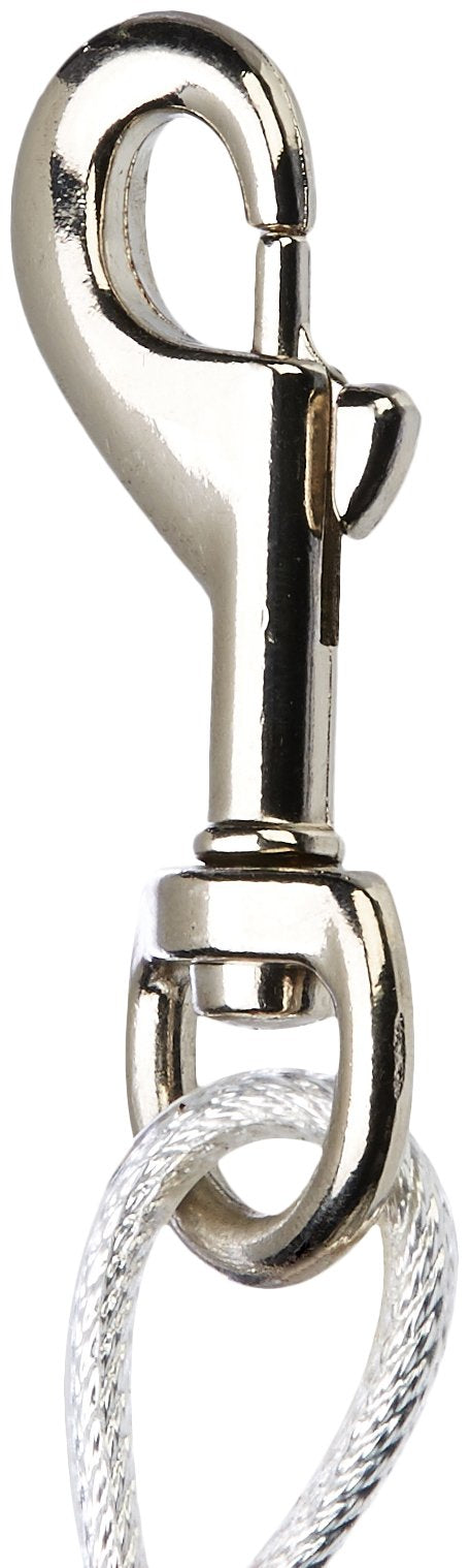 Tie-out cable for medium- to large-size dogs up to 90 pounds Made of rugged steel and PVc for strength and rust-resistant performance Durable metal clips ensure quick easy connections Weighs only 086 pounds white color do not leave pet unattended when connected to cable Measures 25 feet long backed by an Amazon Basics limited one-year warranty