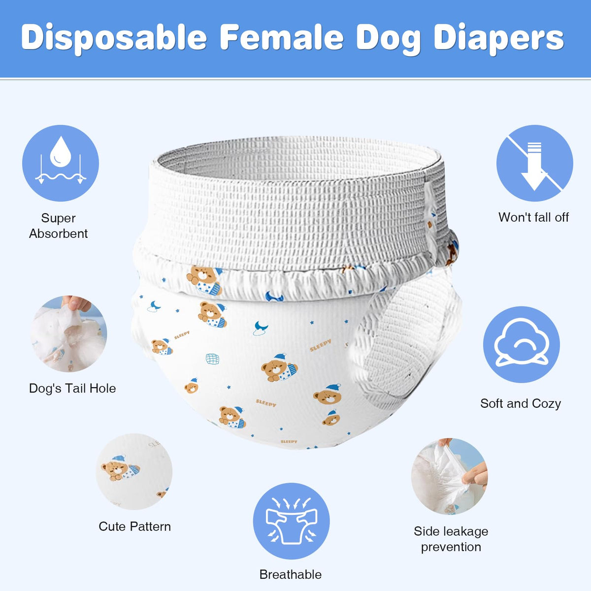 Ambreview Dog Diapers Female, Disposable Pull Up Doggie Diapers For Female Dogs, Ultra Absorbent & Anti-Side Leakage, Stretchy D